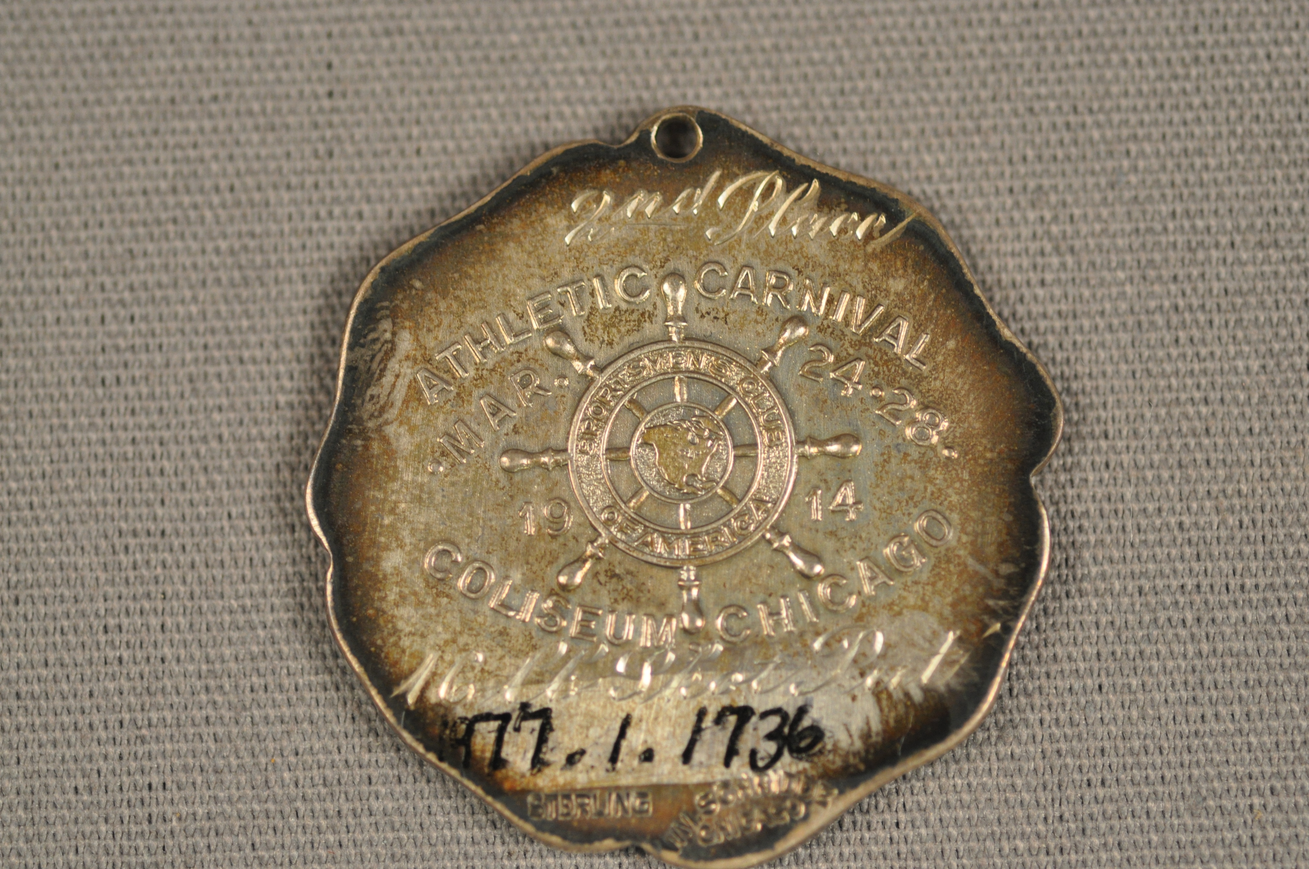 | Artifact Identification | Medal: A.A.U. Central Association, Athletic Carnival, Second Place Shot Put (1977.01.1736) |