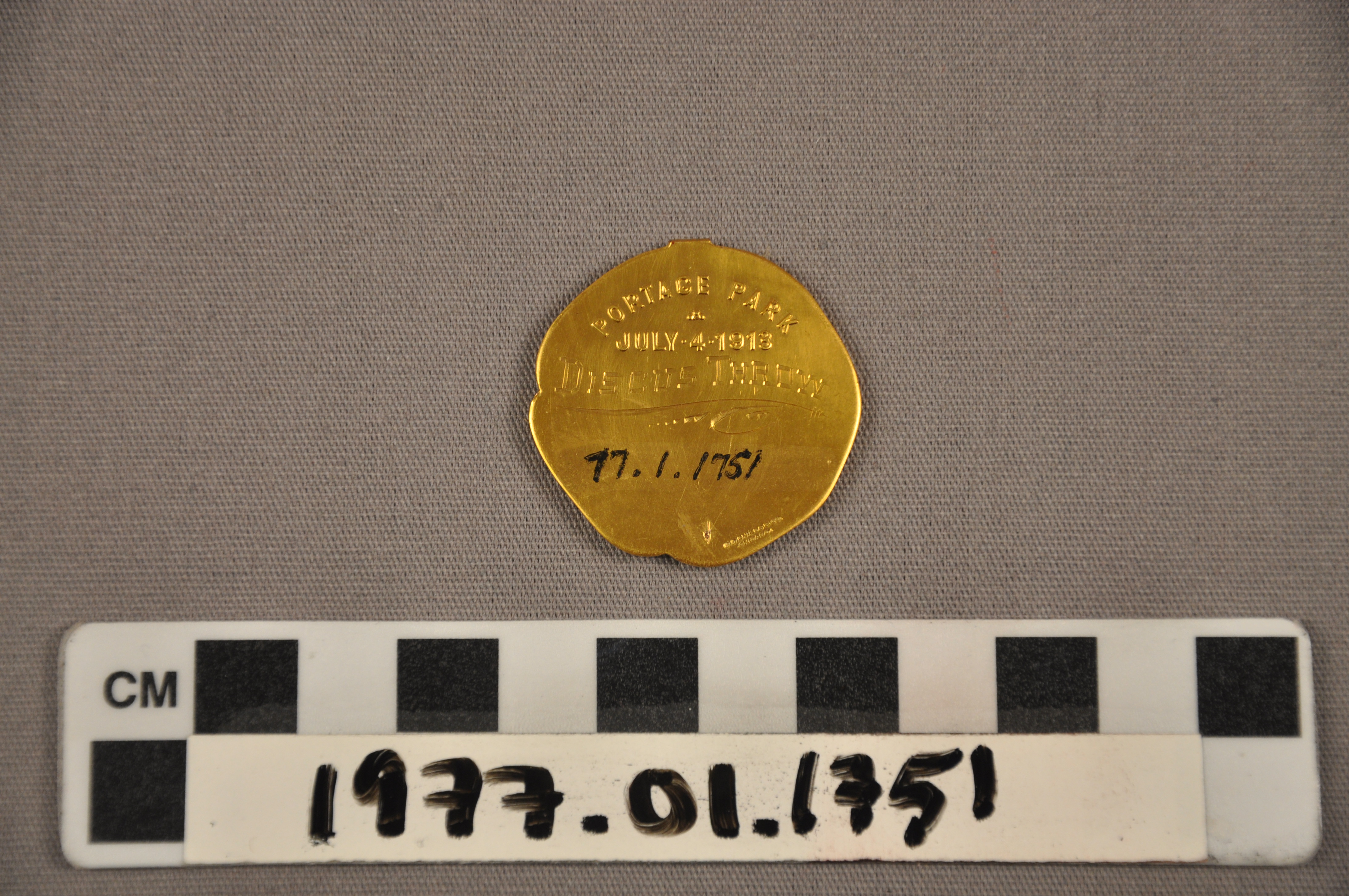 | Artifact Identification | Medal: Portage Park Games, Discus Throw (1977.01.1751) |