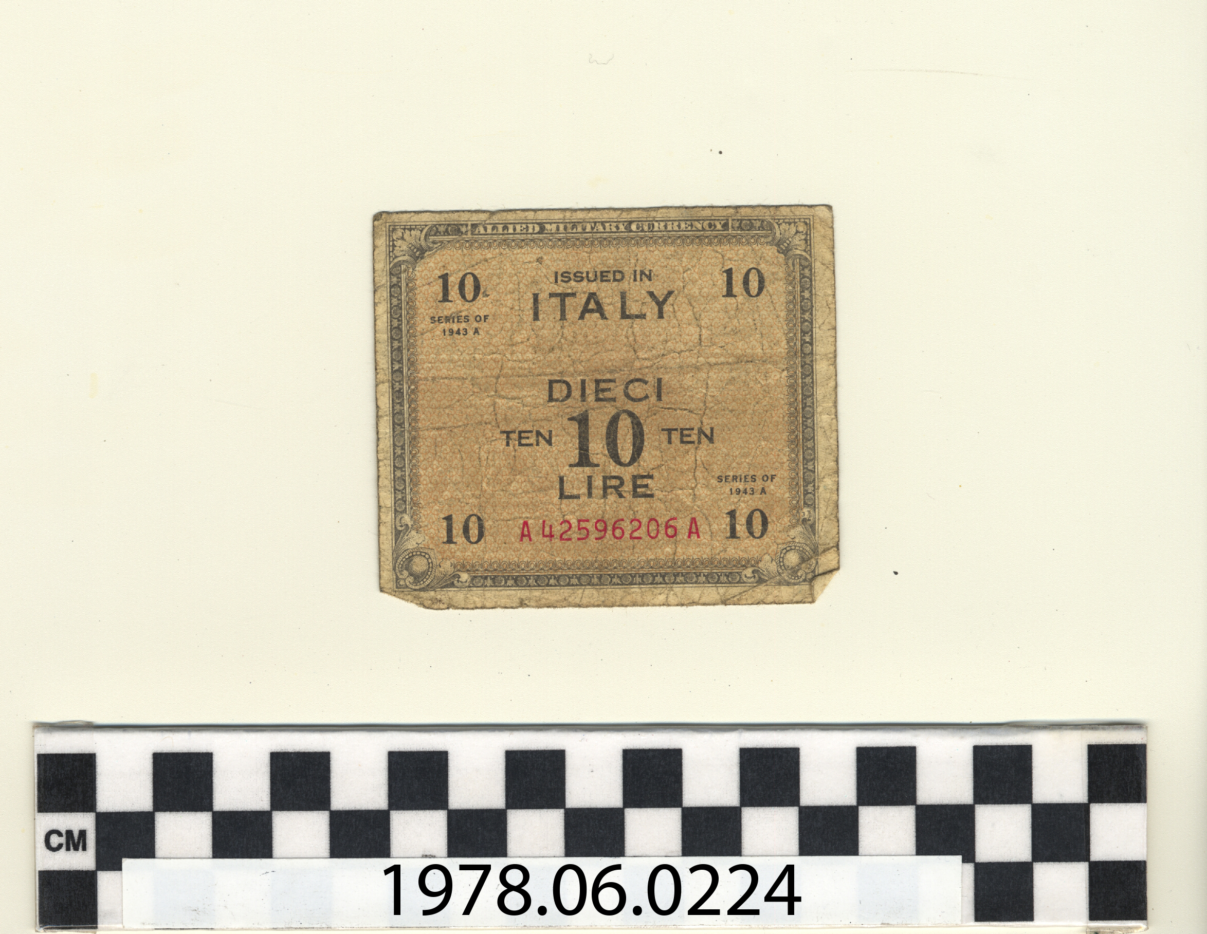 | Artifact Identification | Bank Note: Italy, 10 Lire (1978.06.0224) |