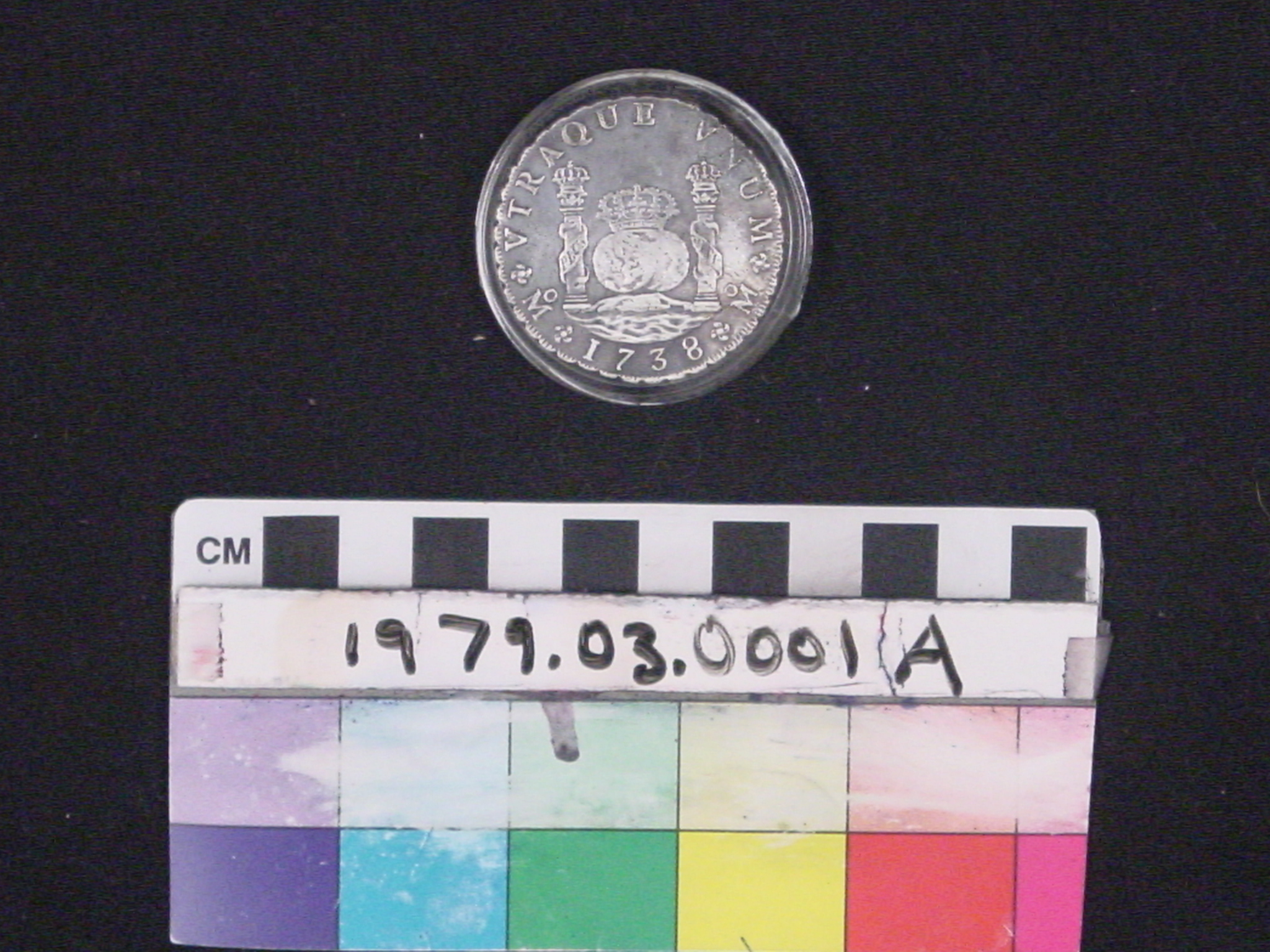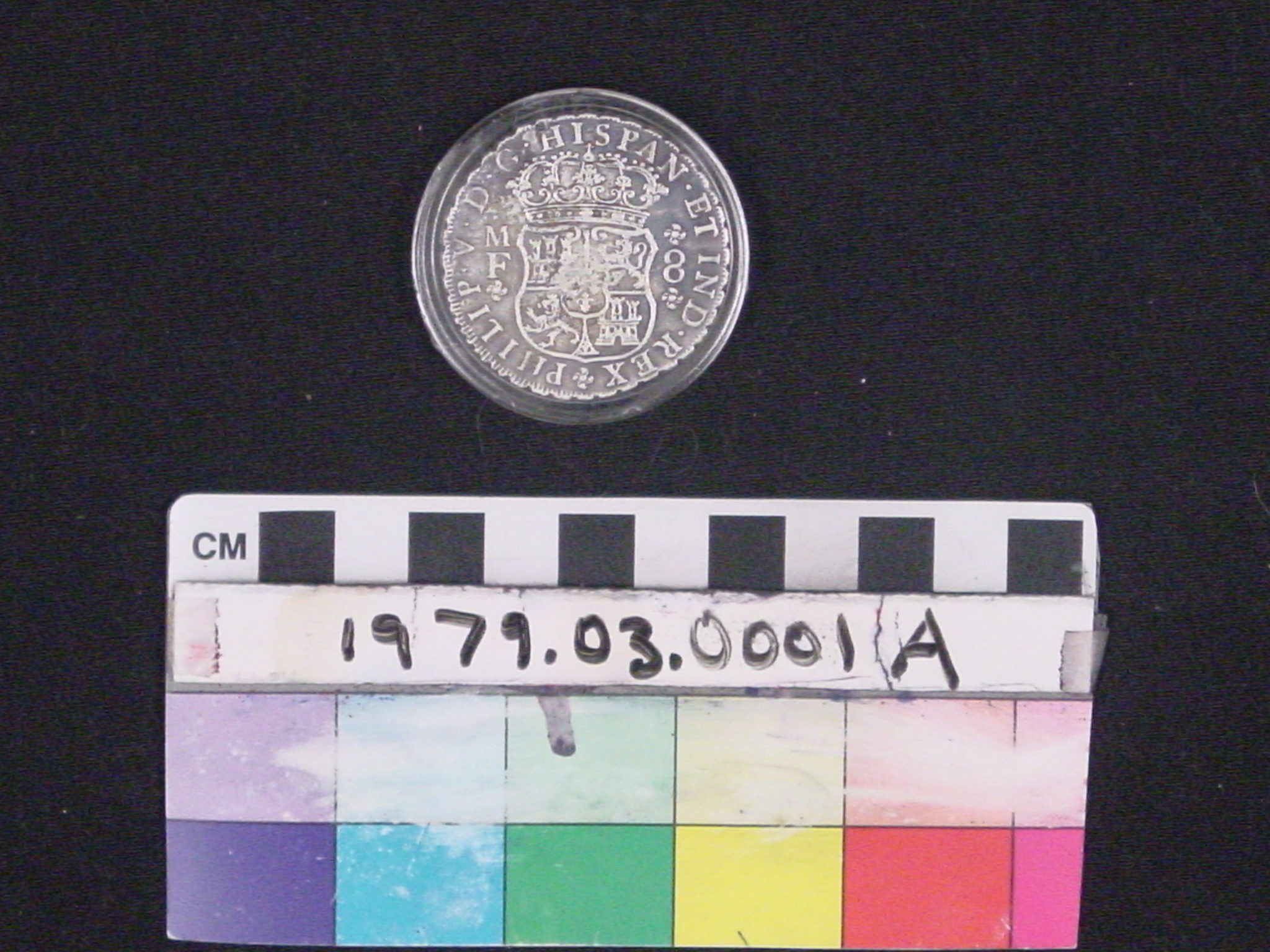 | Artifact Identification | Coin: Spanish 8 Reales/Pillar Silver Dollar (1979.03.0001A) |