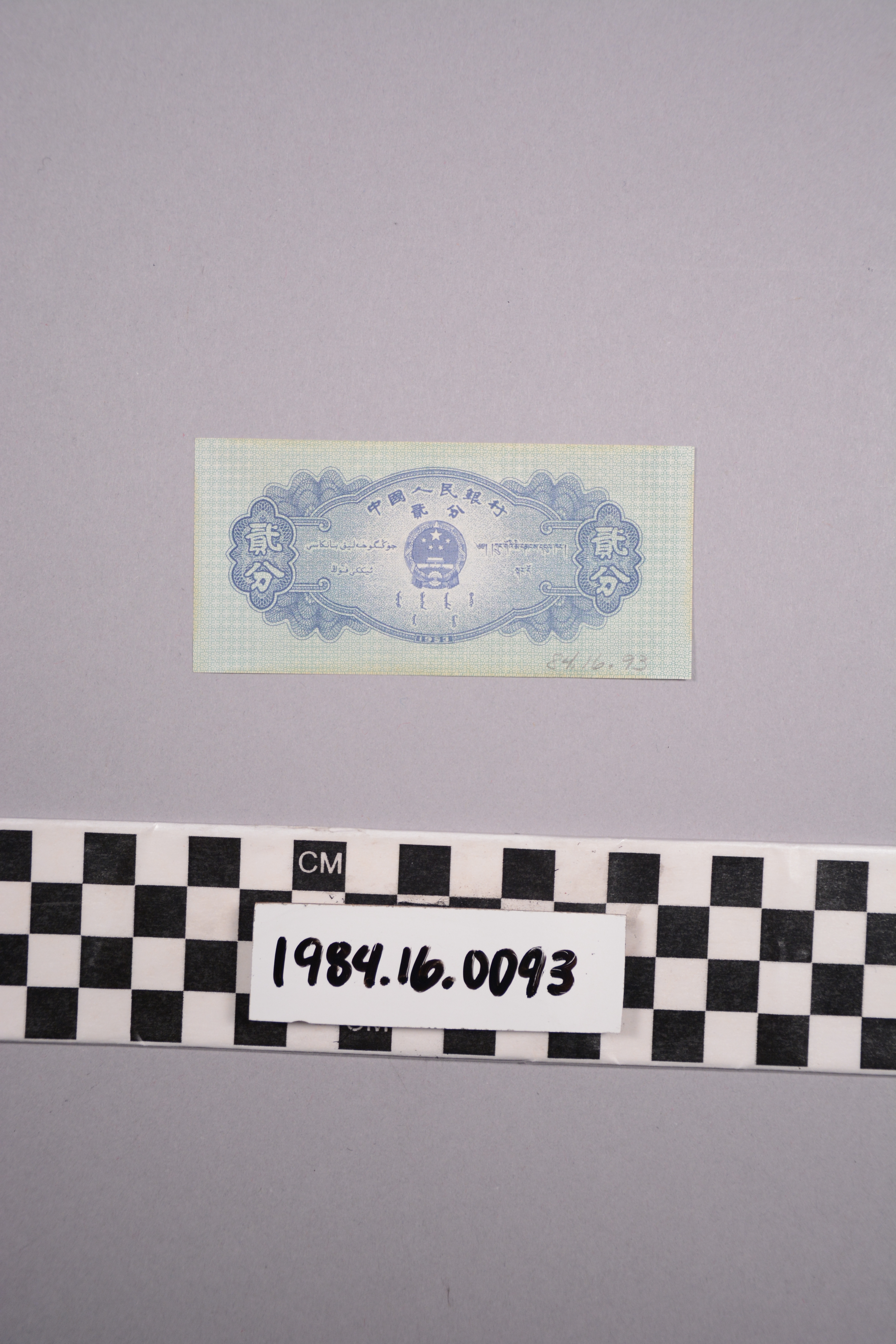 | Artifact Identification | Bank Note: People's Republic of China, 2 Cents or 2 Fen? (1984.16.0093) |