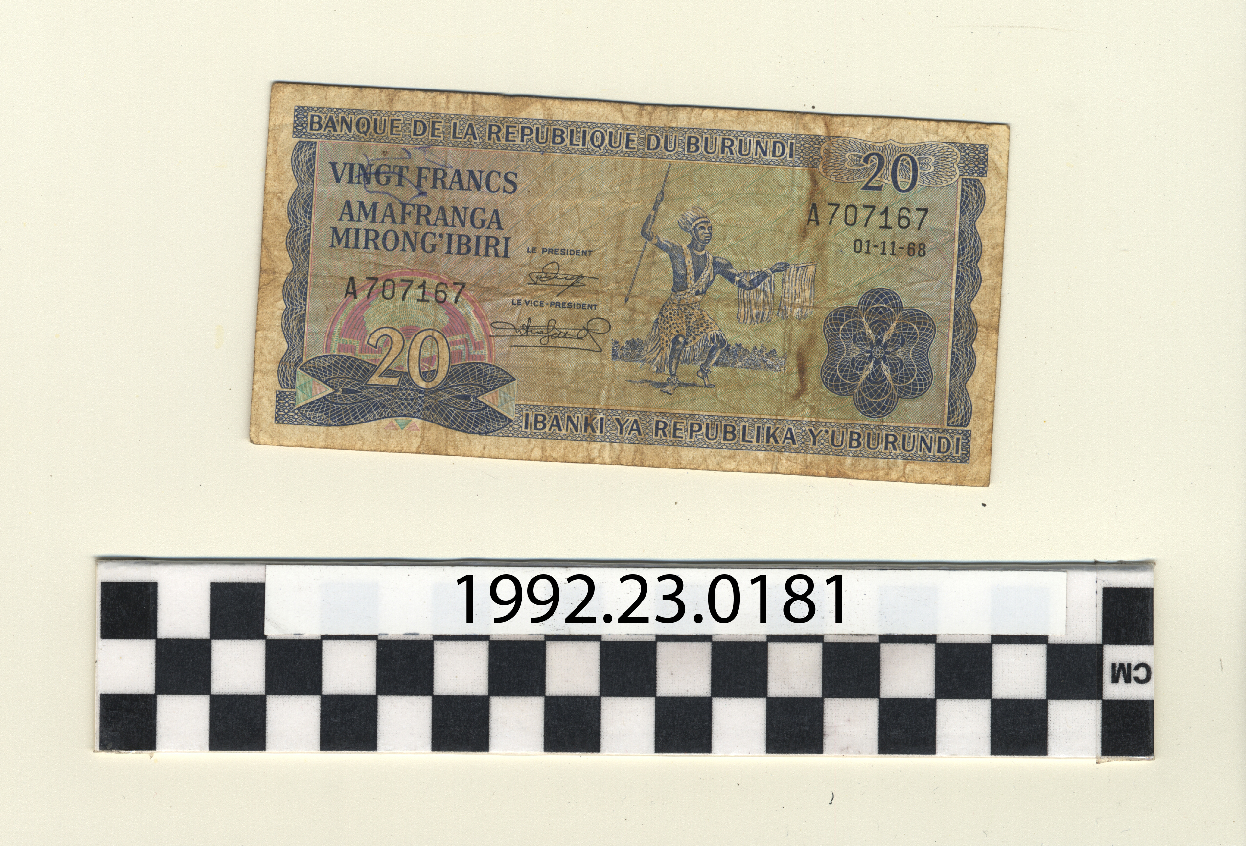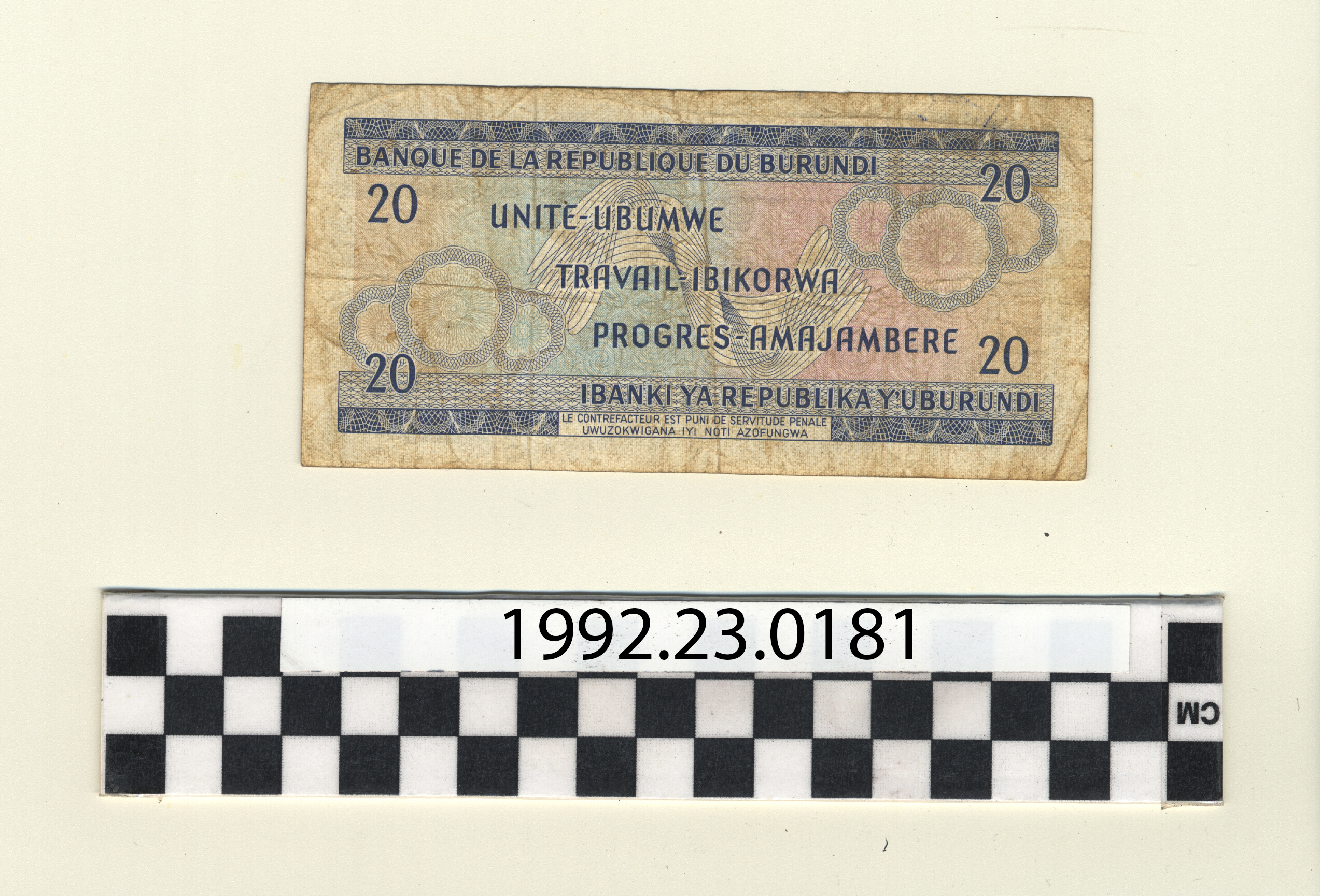 | Artifact Identification | Bank Note: Republic of Burundi, 20 Francs (1992.23.0181) |