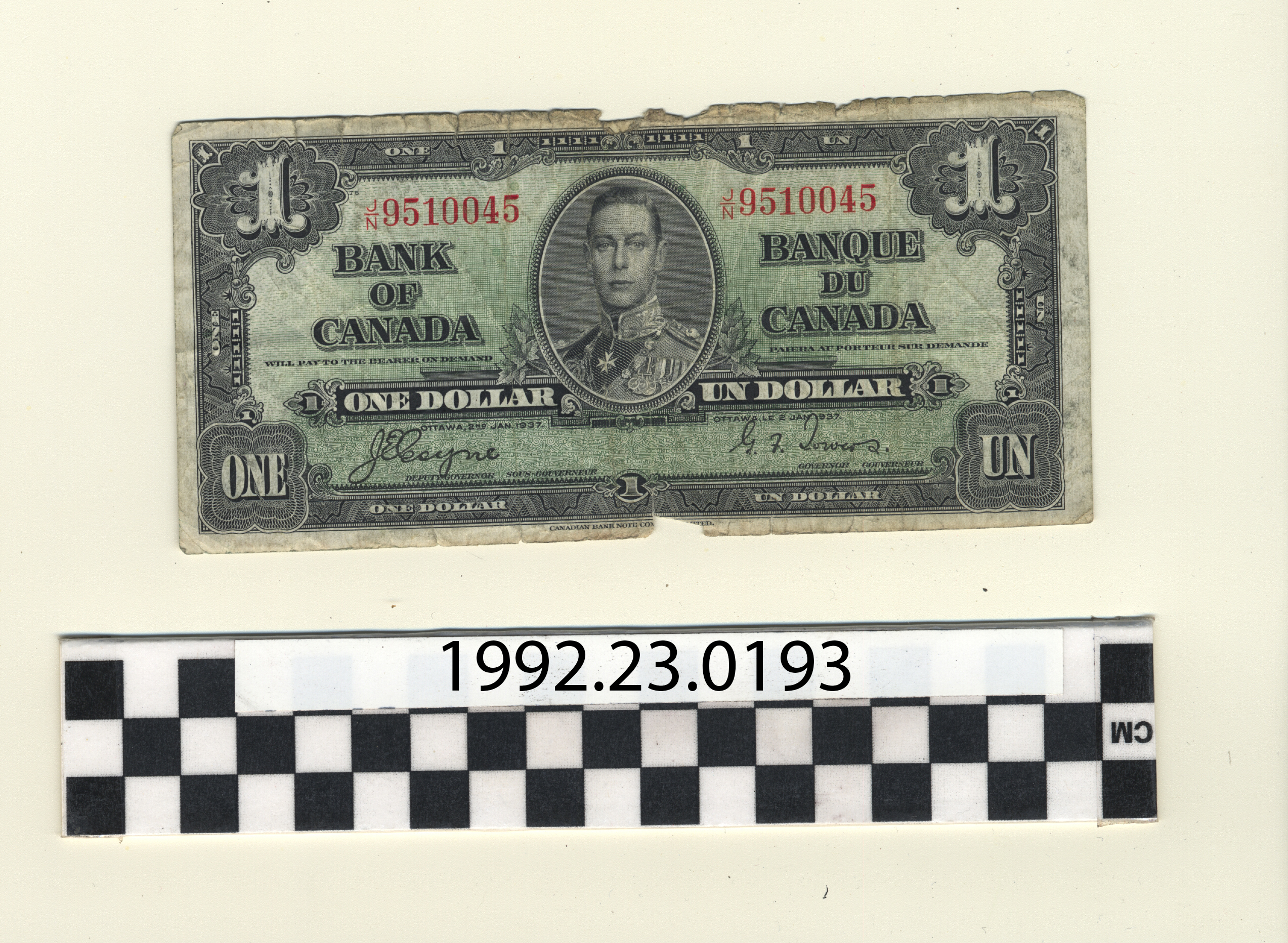 | Artifact Identification | Bank Note: Canada, 1 Dollar (1992.23.0193) |