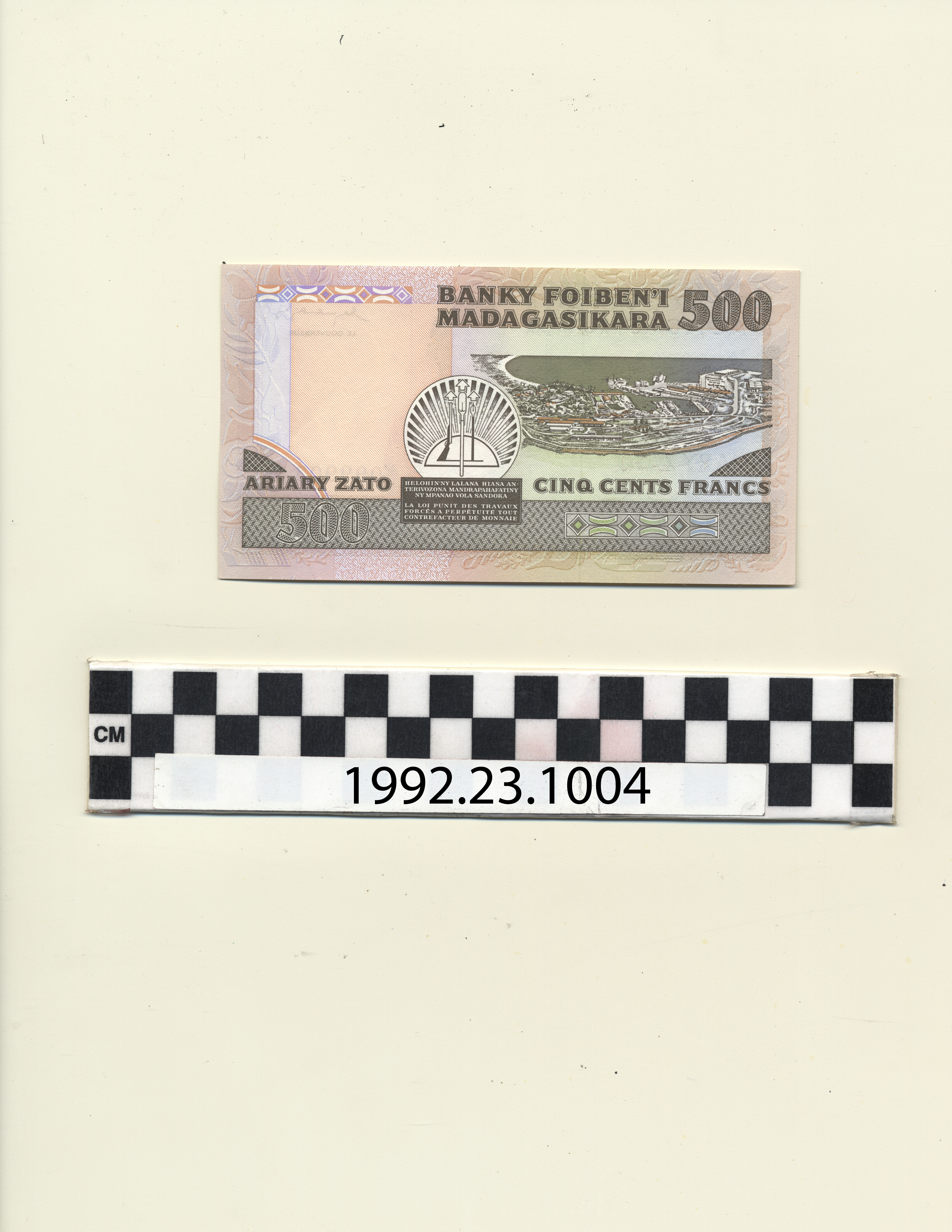 | Artifact Identification | Bank Note: Malagasy Republic, 500 Francs (1992.23.1004) |