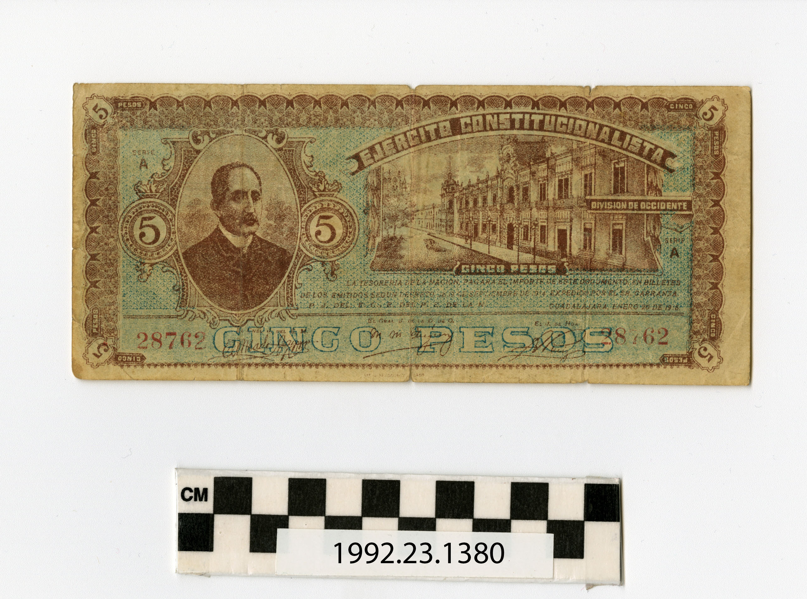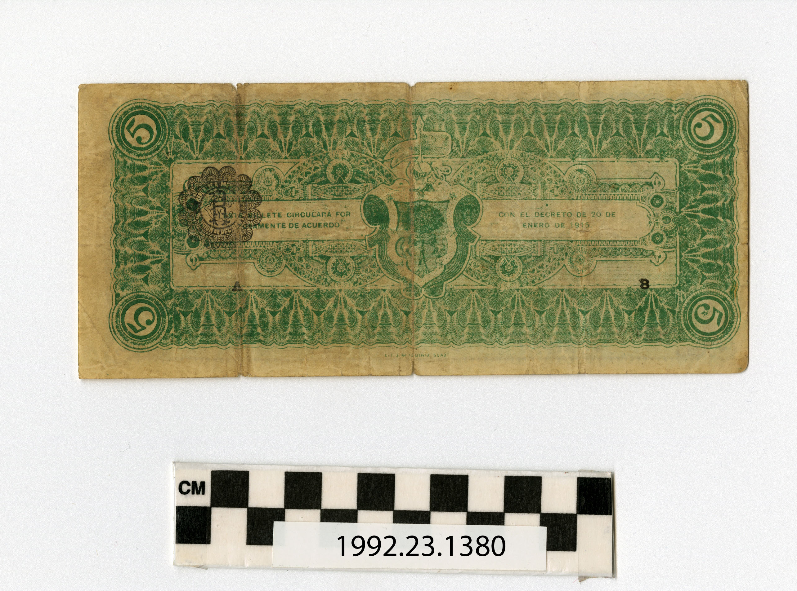 | Artifact Identification | Bank Note: Mexico, 5 Pesos (1992.23.1380) |