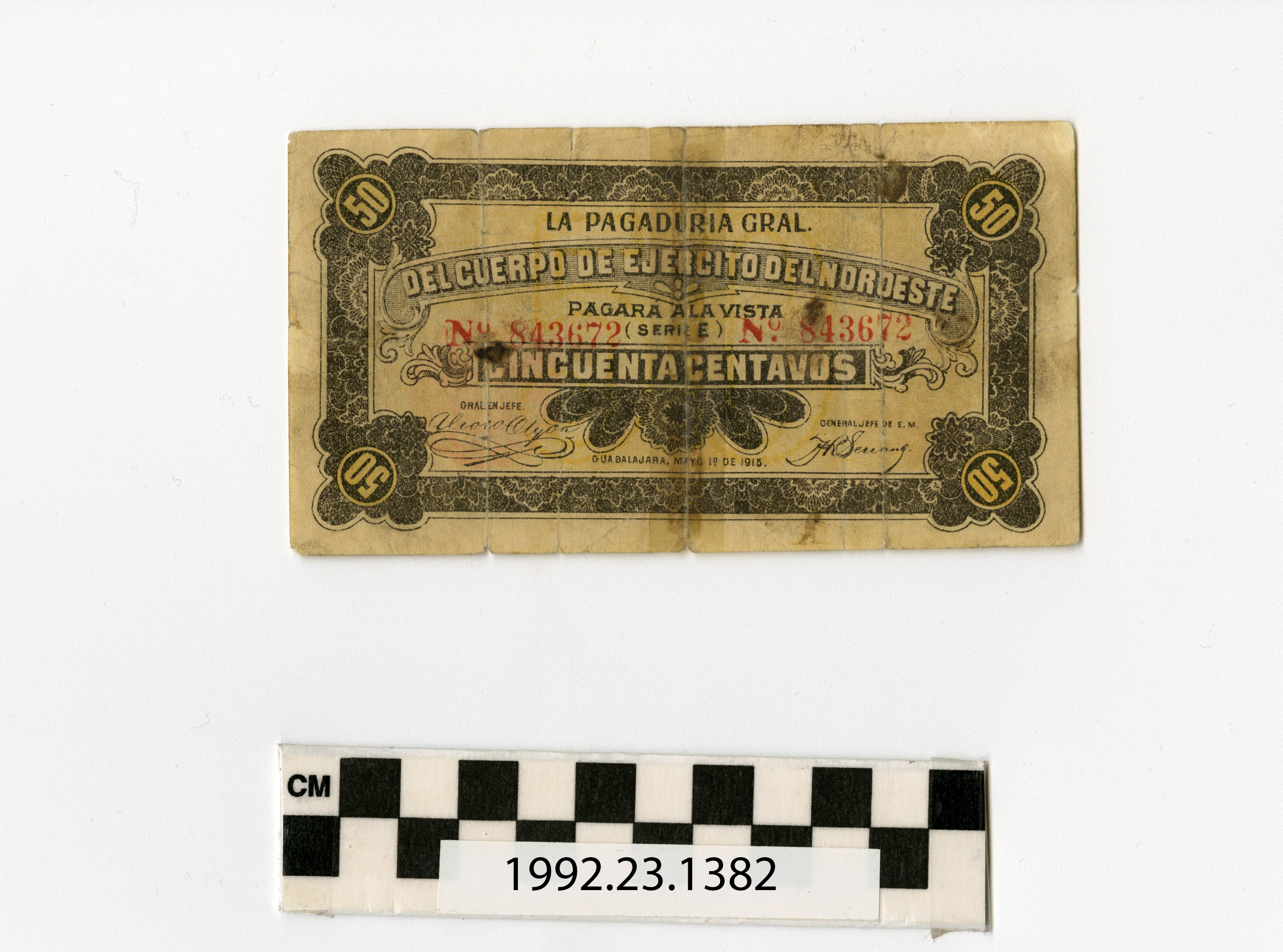 | Artifact Identification | Bank Note: Mexico, 50 Centavos (1992.23.1382) |