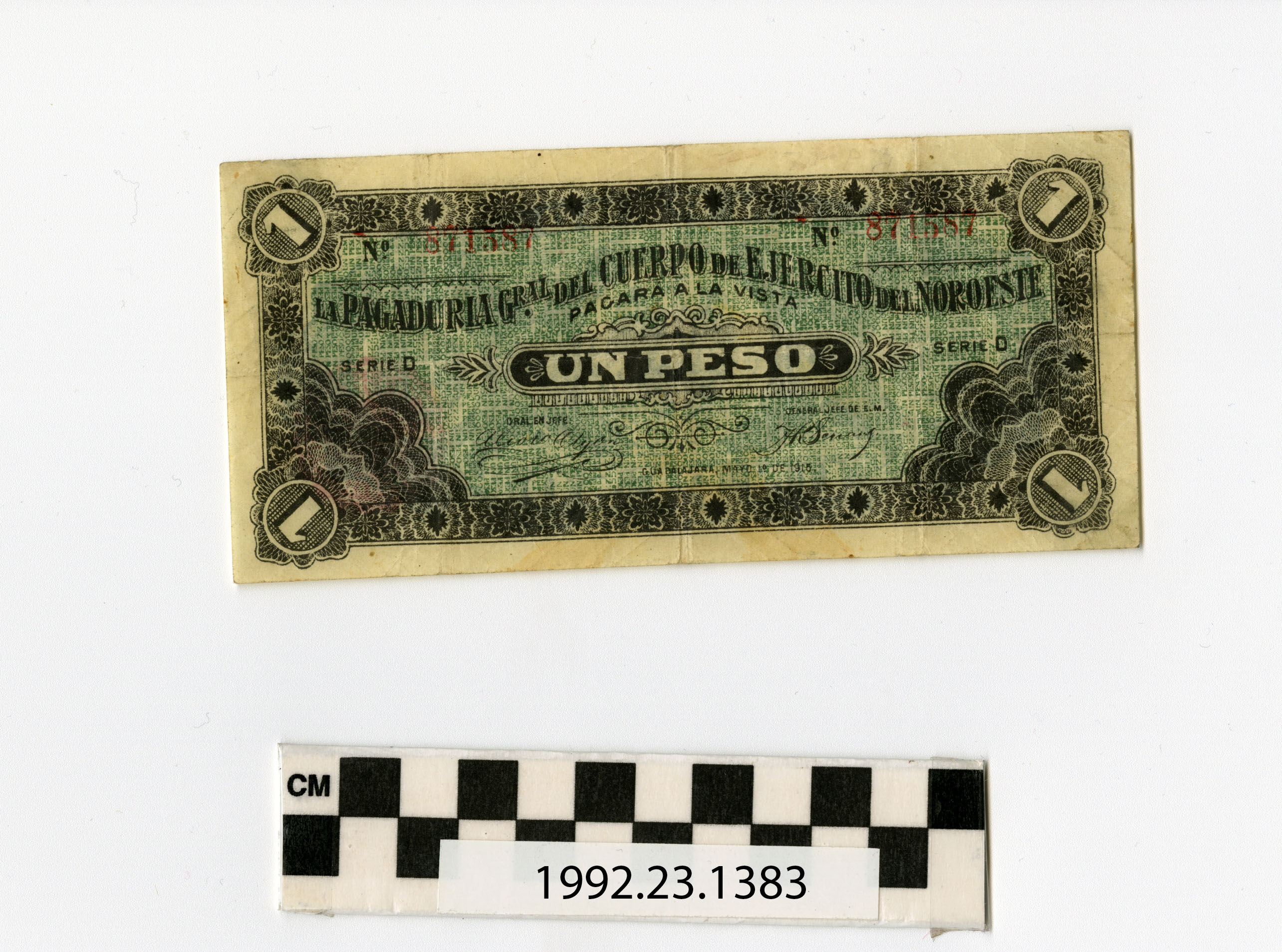 | Artifact Identification | Bank Note: Mexico, 1 Peso (1992.23.1383) |