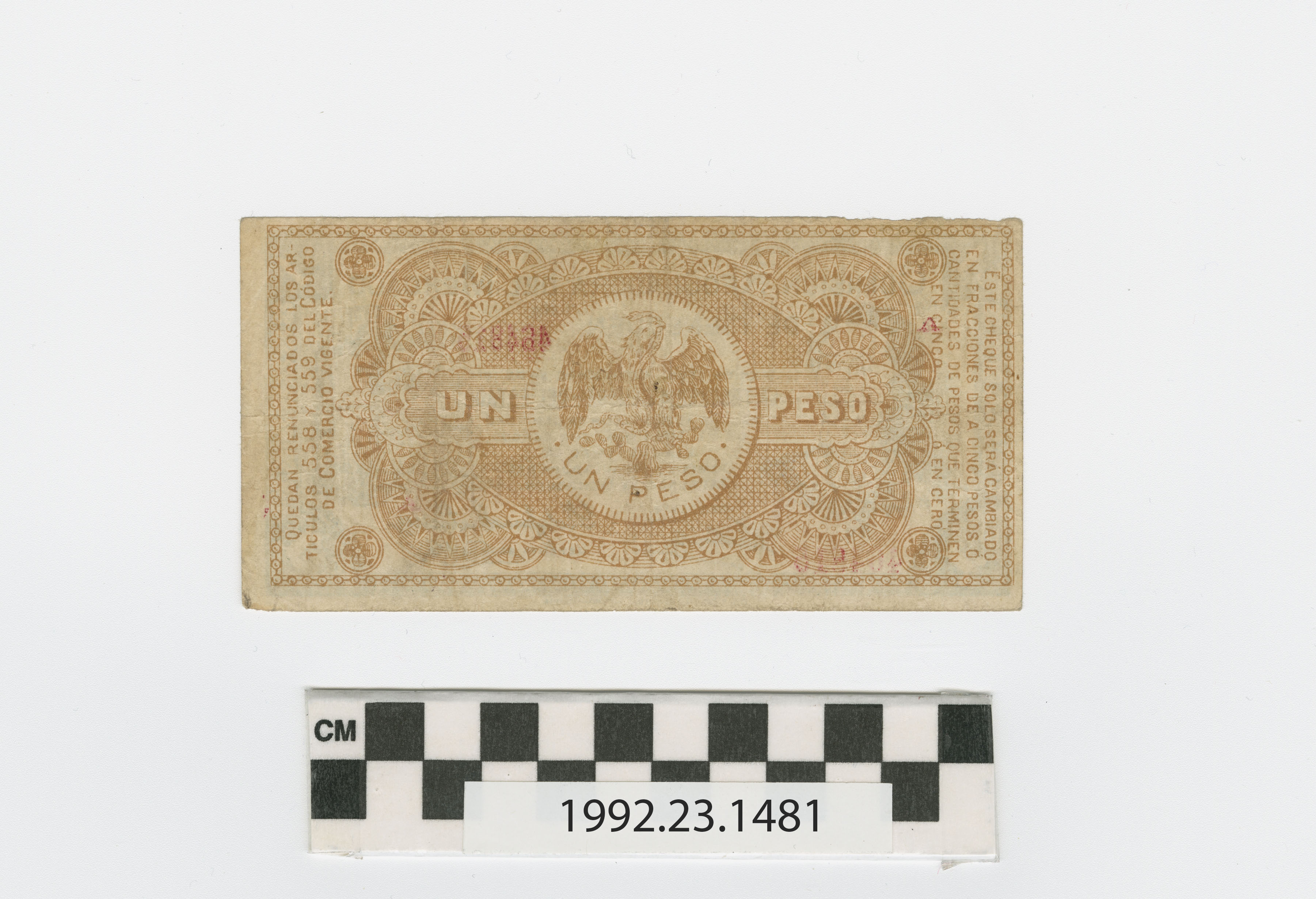 | Artifact Identification | Bank Note: Mexico, 1 Peso (1992.23.1481) |