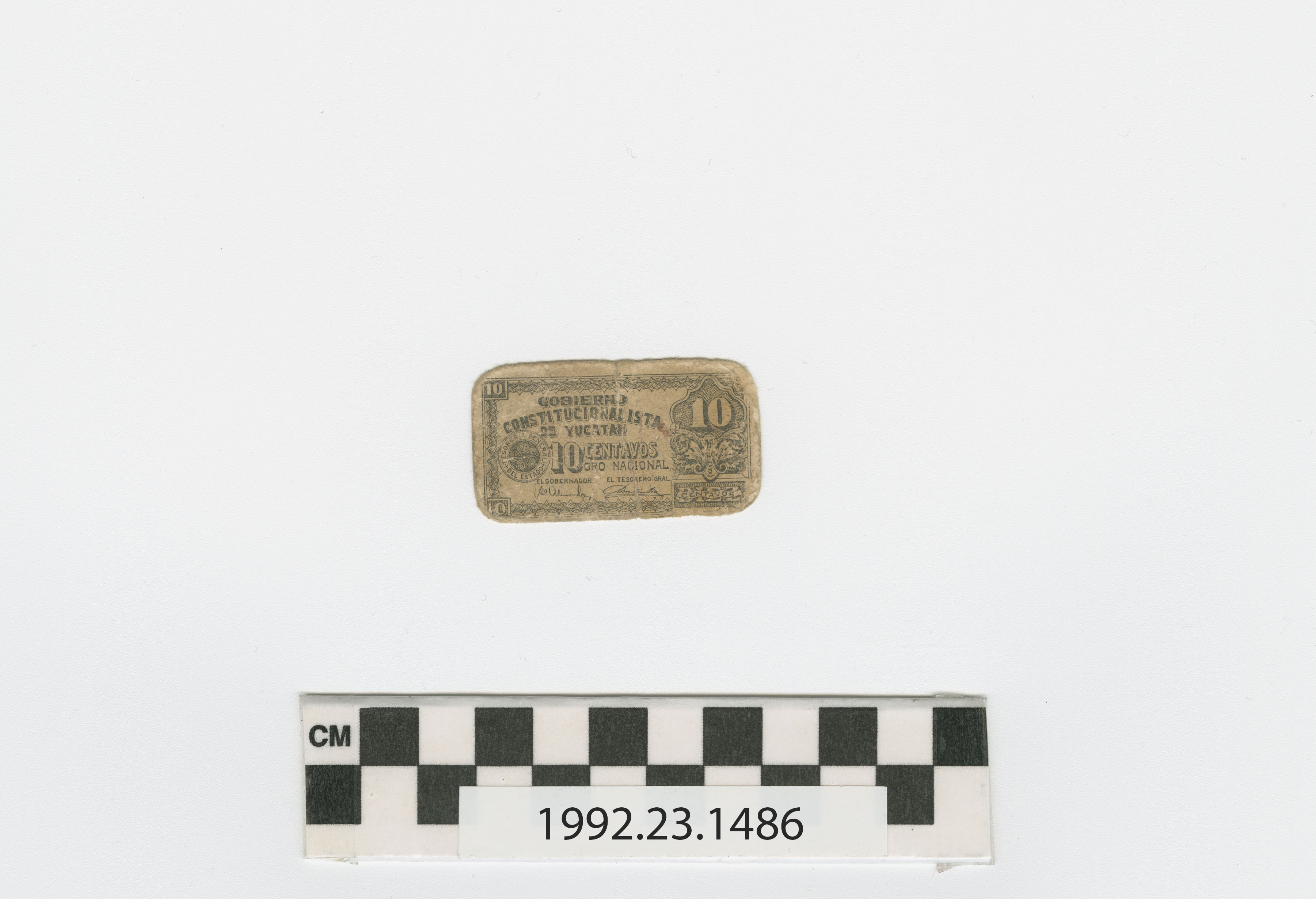 | Artifact Identification | Bank Note: Mexico, 10 Centavos (1992.23.1486) |