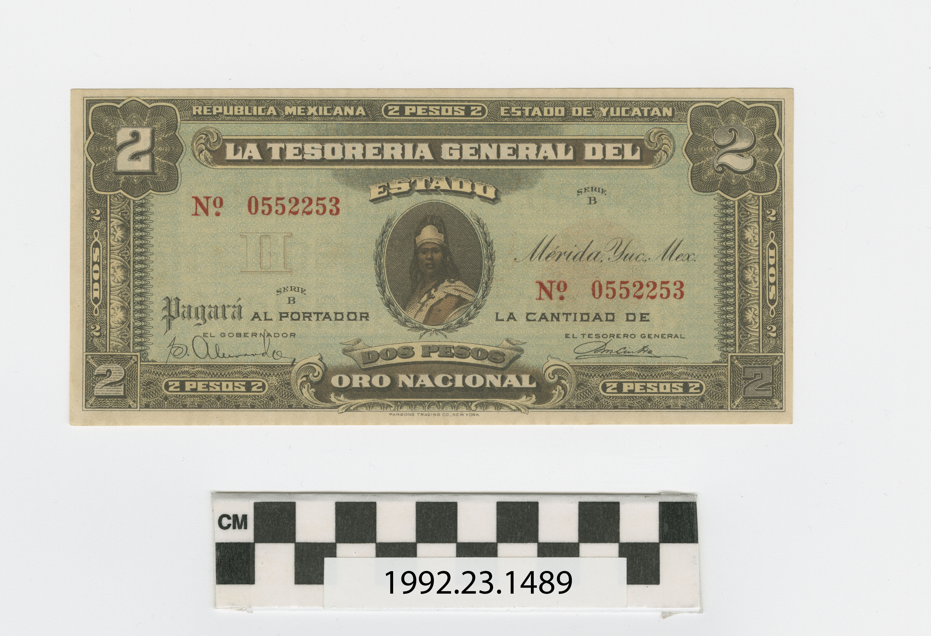 | Artifact Identification | Bank Note: Mexico, 2 Pesos (1992.23.1489) |