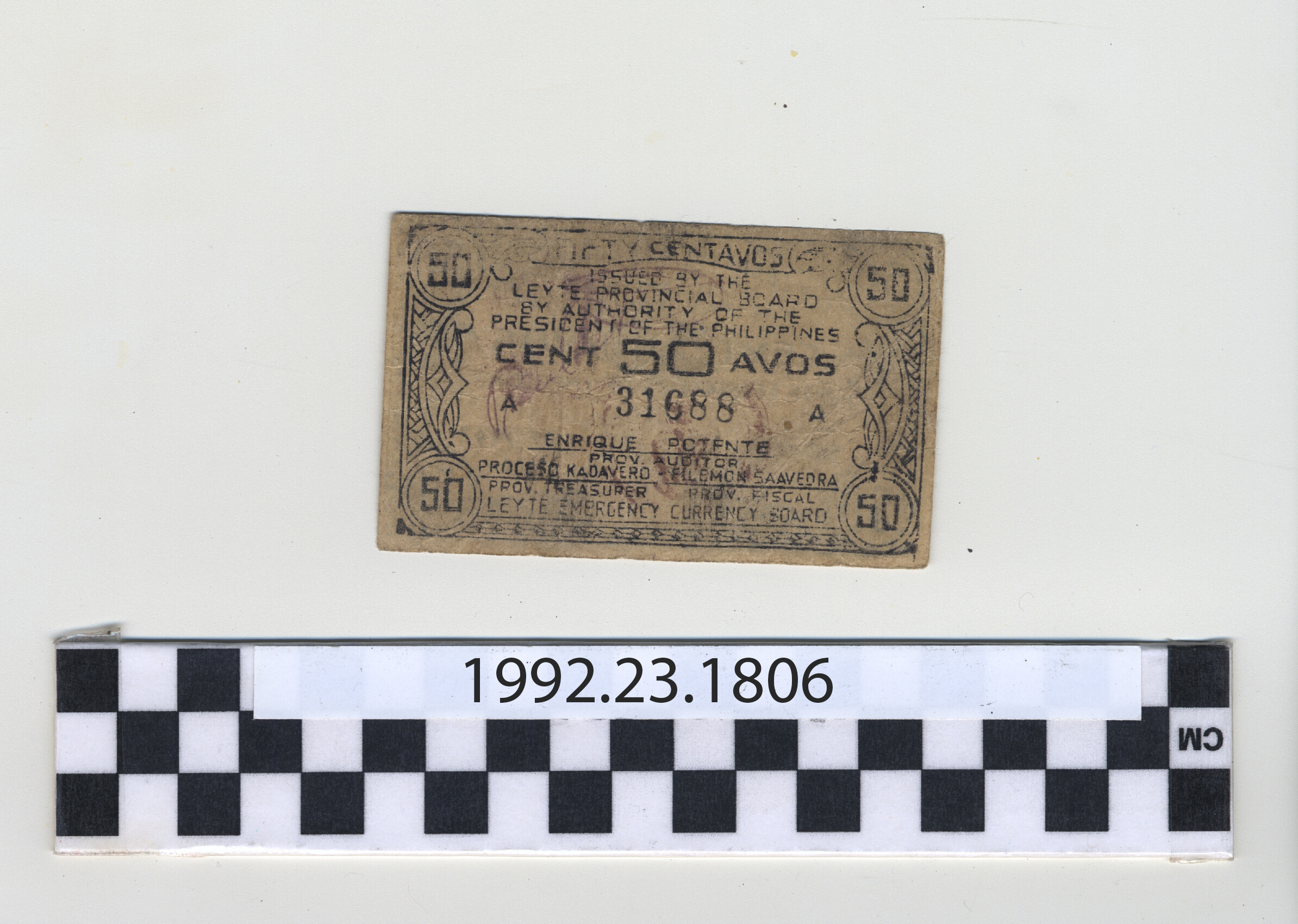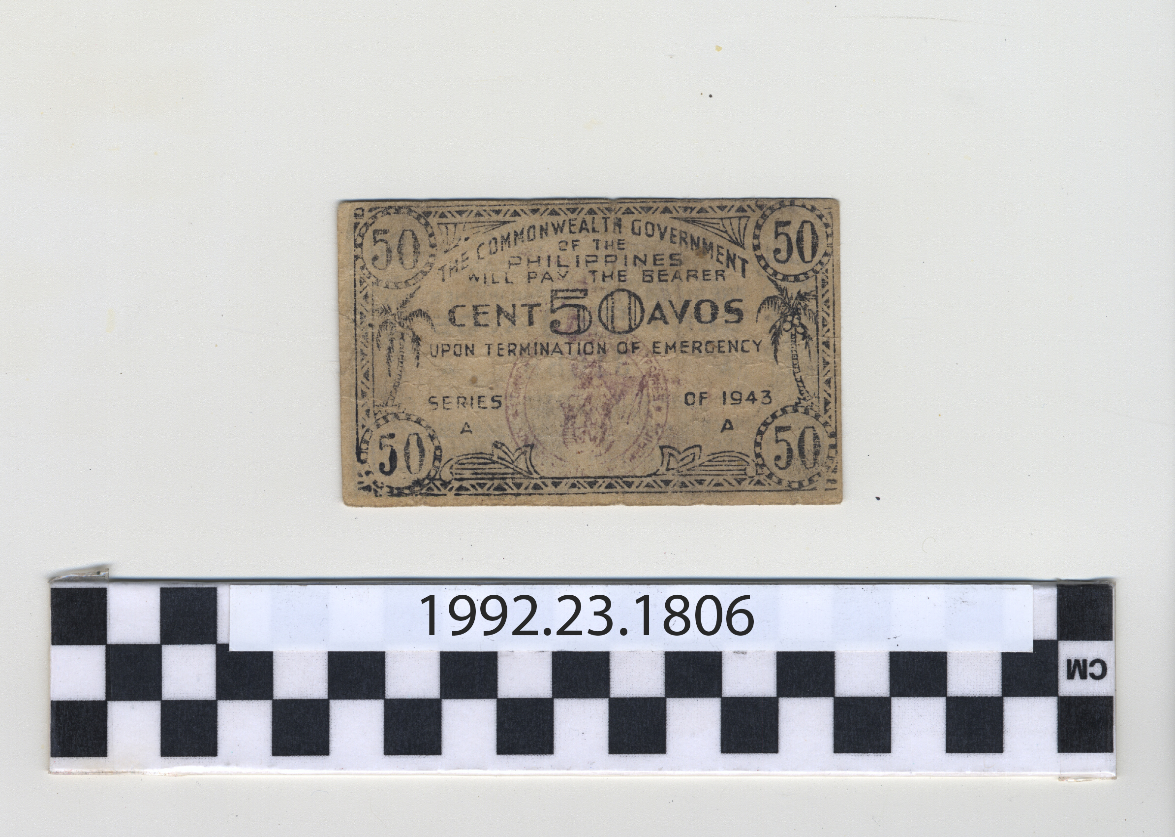 | Artifact Identification | Philippine Commonwealth Government Leyte Emergency Circulating Bank Note: 50 Centavos (1992.23.1806) |