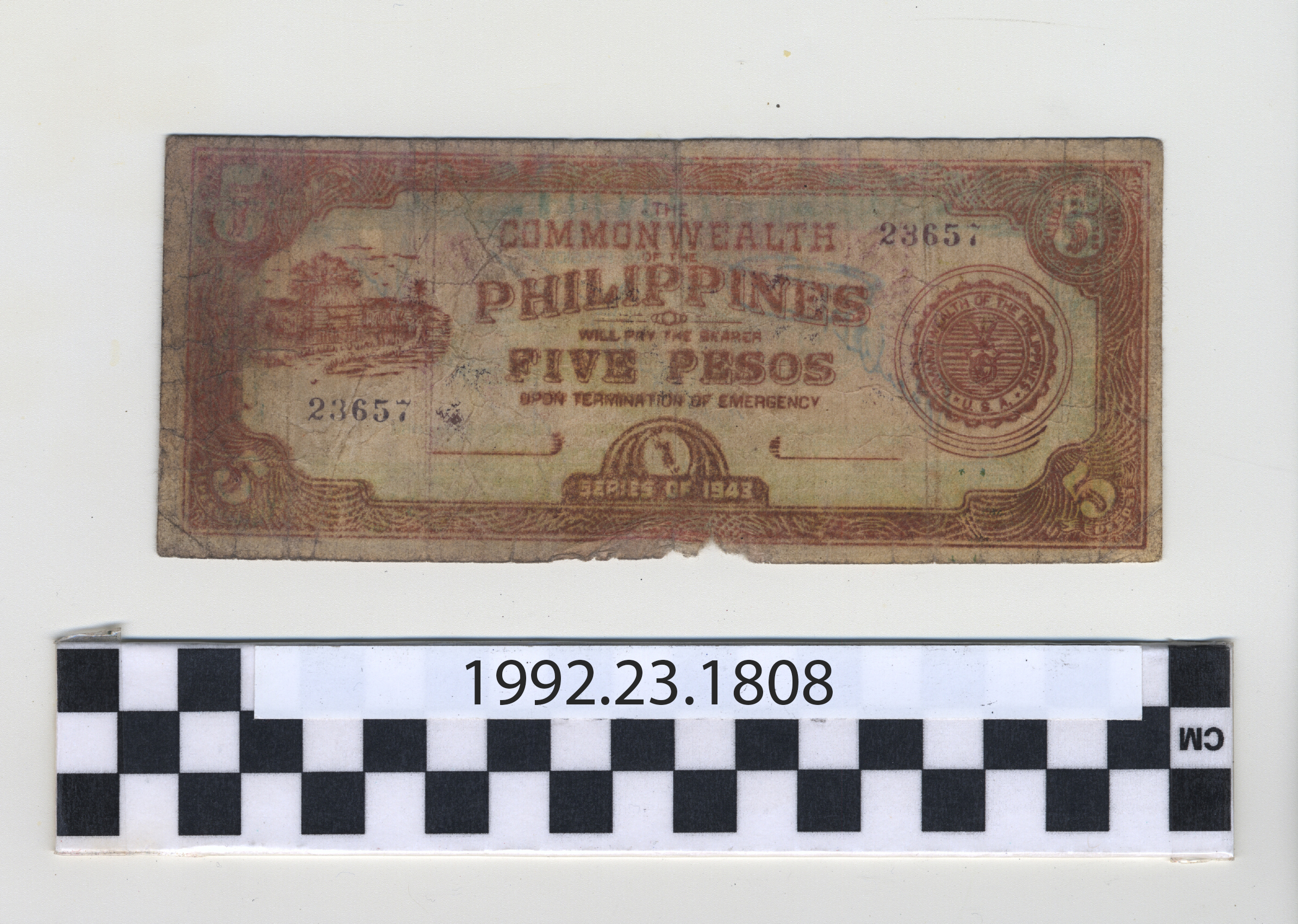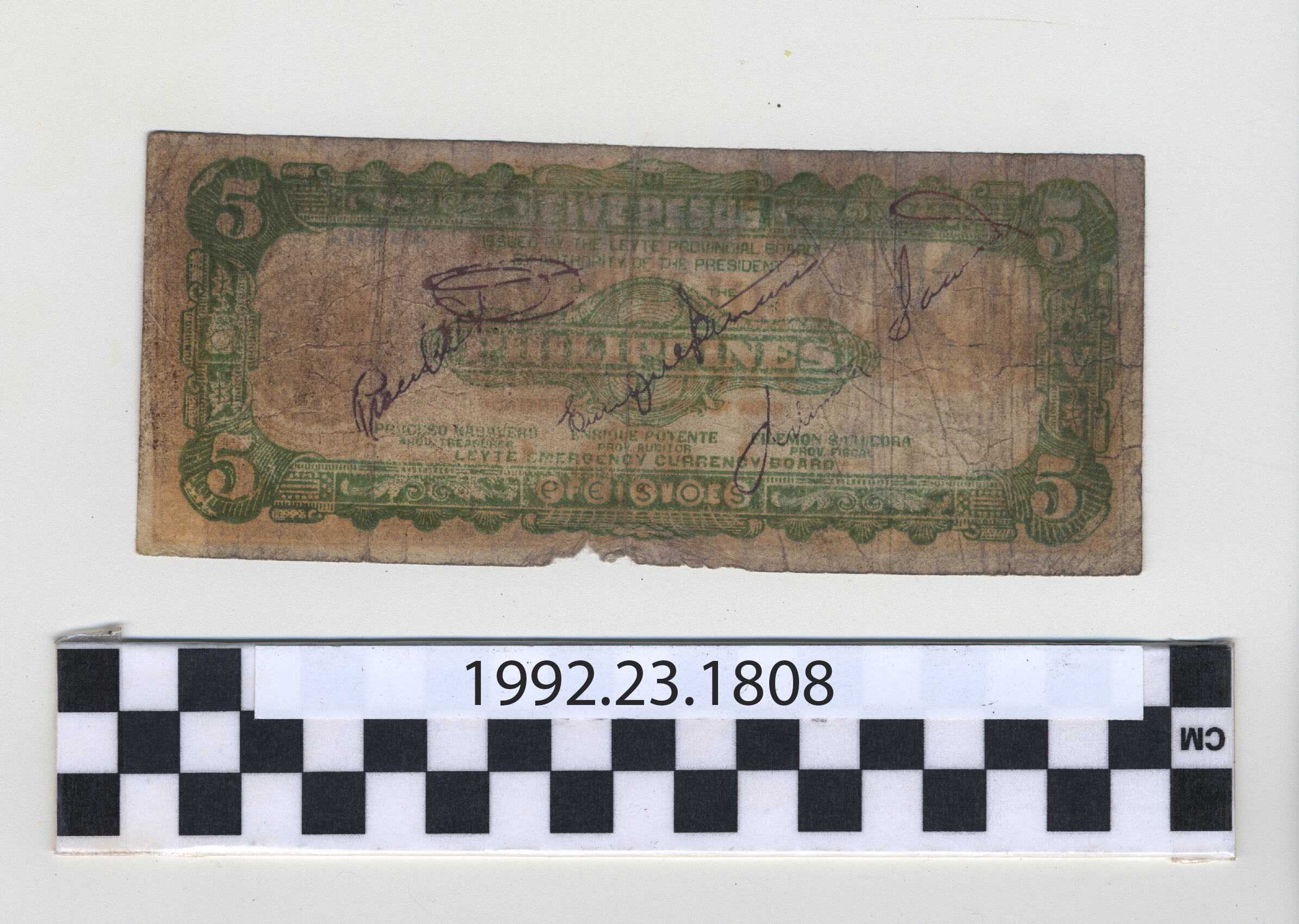 | Artifact Identification | Philippine Commonwealth Government Leyte Emergency Circulating Bank Note: 5 Pesos (1992.23.1808) |