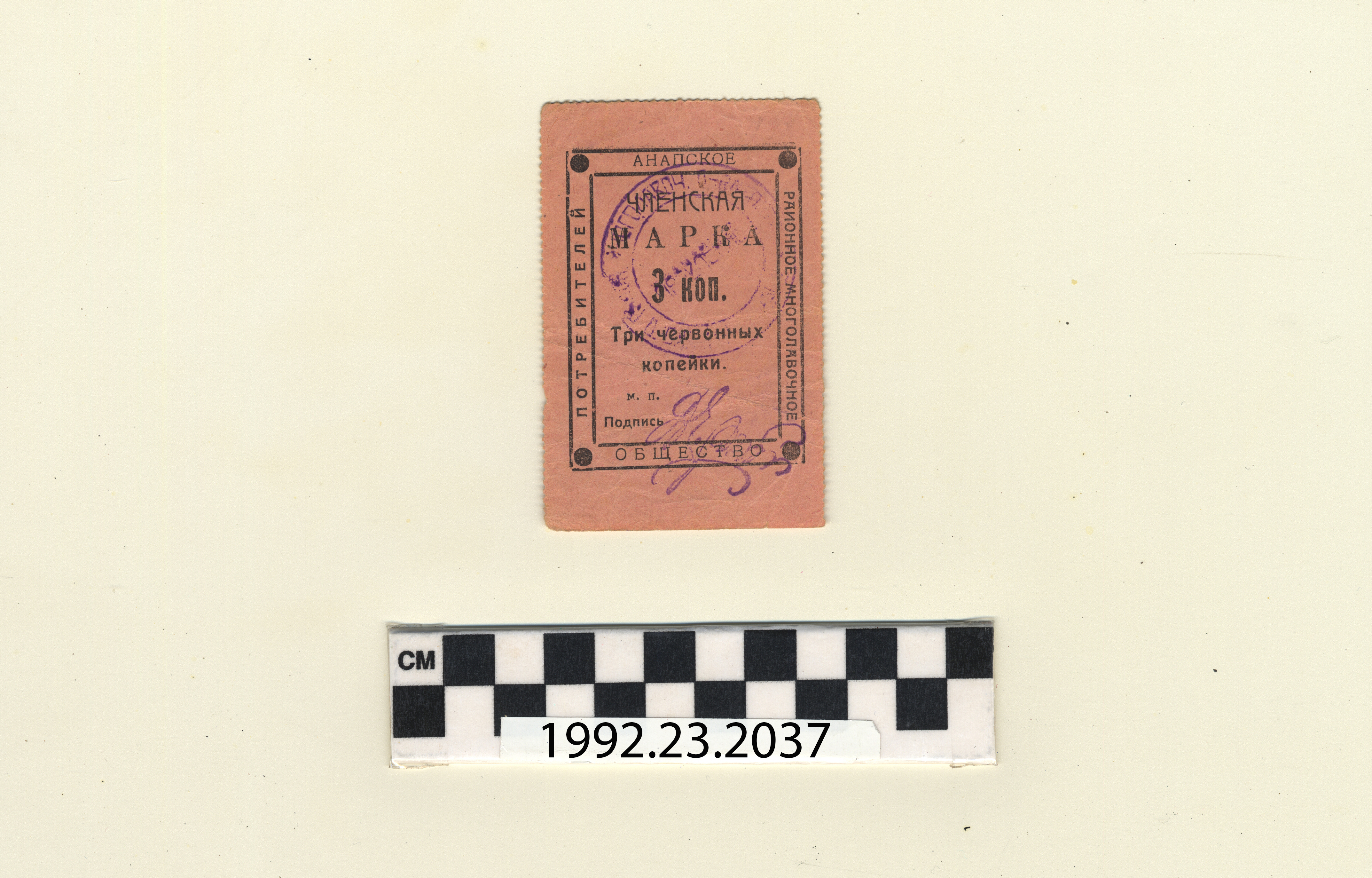 | Artifact Identification | Bank Note: Northern Caucasus, 3 Kopeks (1992.23.2037) |