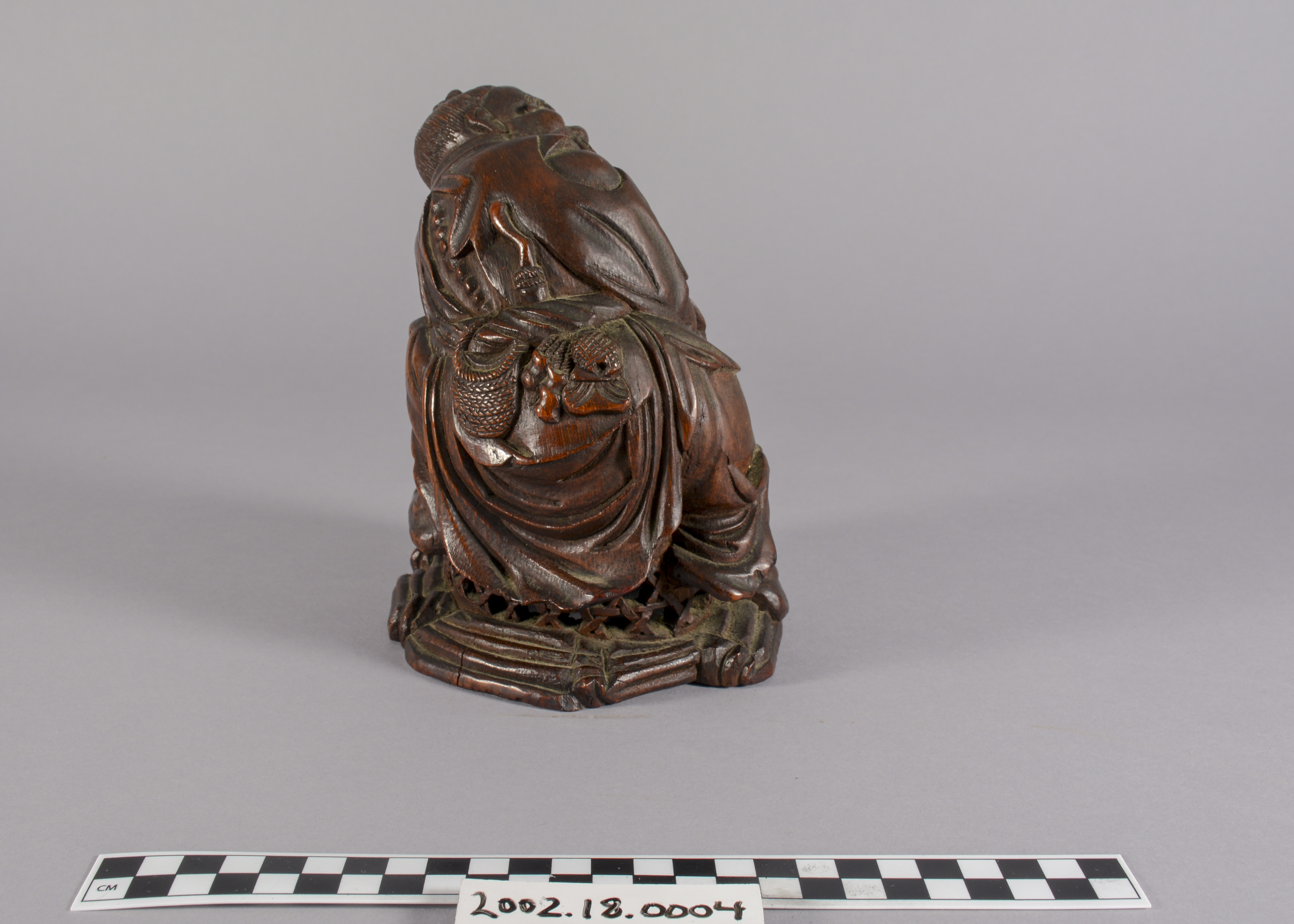 The Spurlock museum holds a variety of Chinese lacquer figures created during the Qing Dynasty (1644-1911), and they serve as representations of regional beliefs and ethics, cultural figureheads, and the human condition. Common muses included famed scholars and poets, arhats (Buddhist holy men), bodhisattvas (Buddhists who have achieved enlightenment but choose to remain in the world to help others end their suffering), deities of East Asian belief structures, and the Chinese zodiac. Animals, plants, and other natural objects were also carved and are typically associated with good fortune and other favorable life conditions.