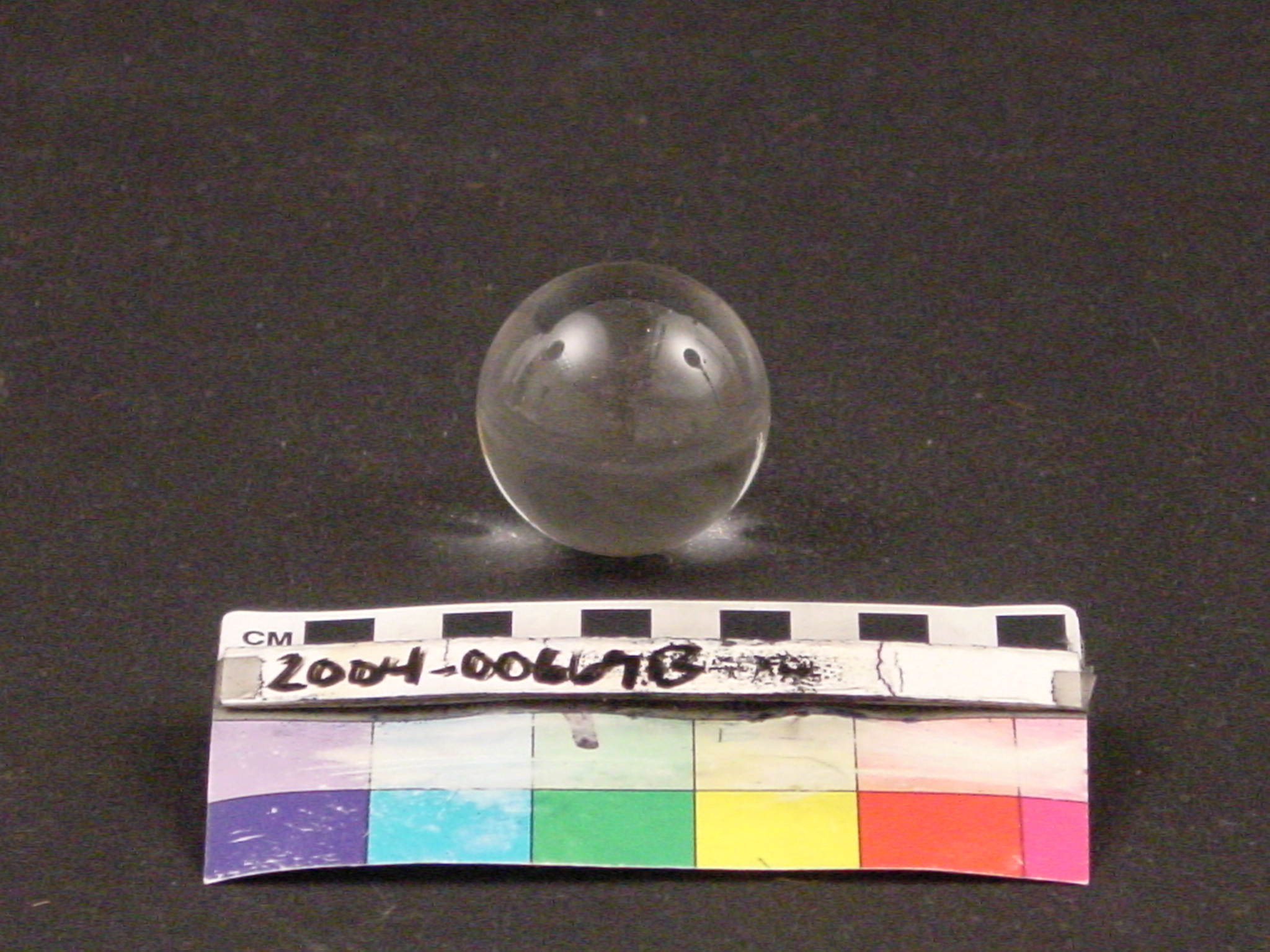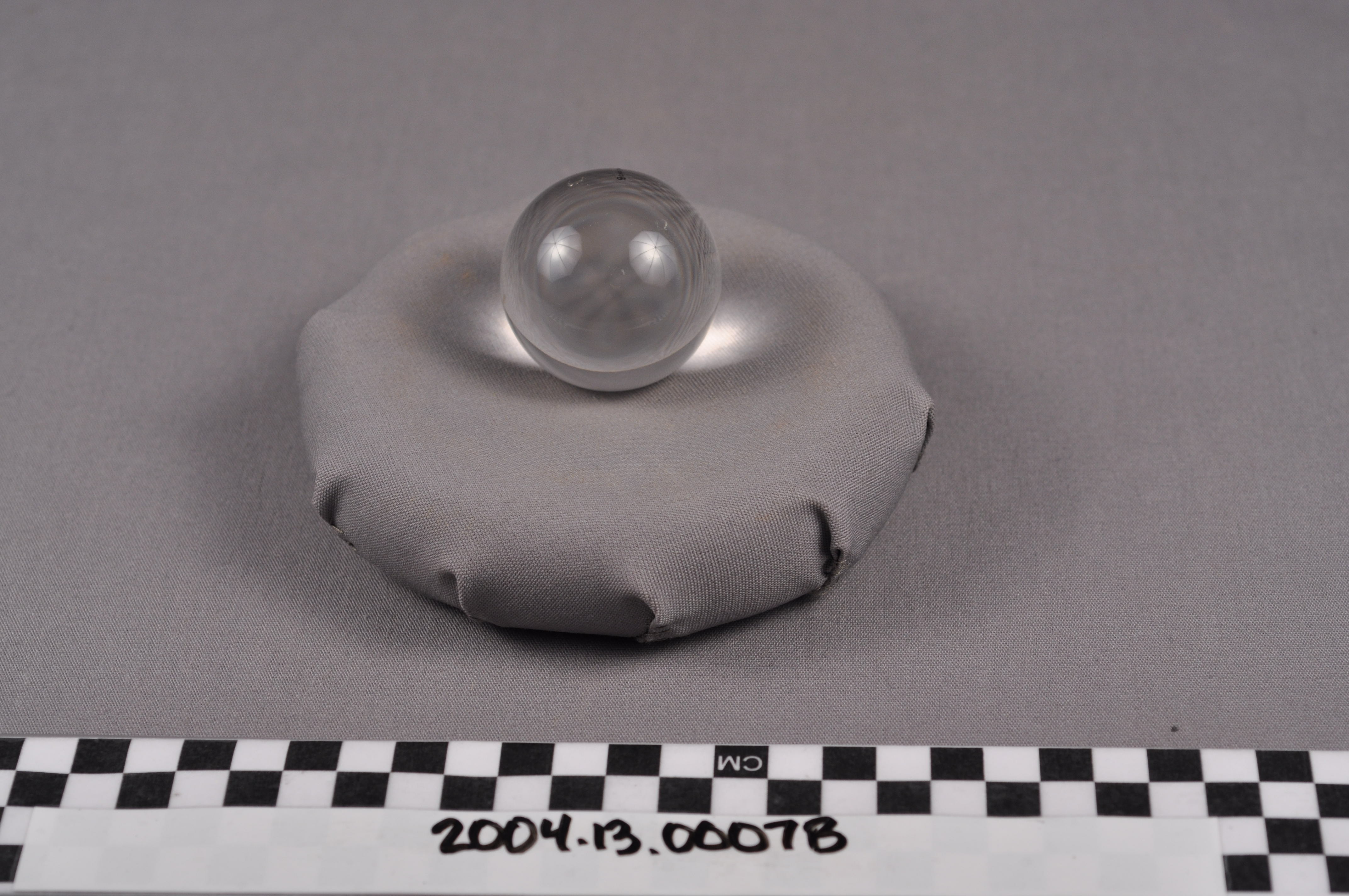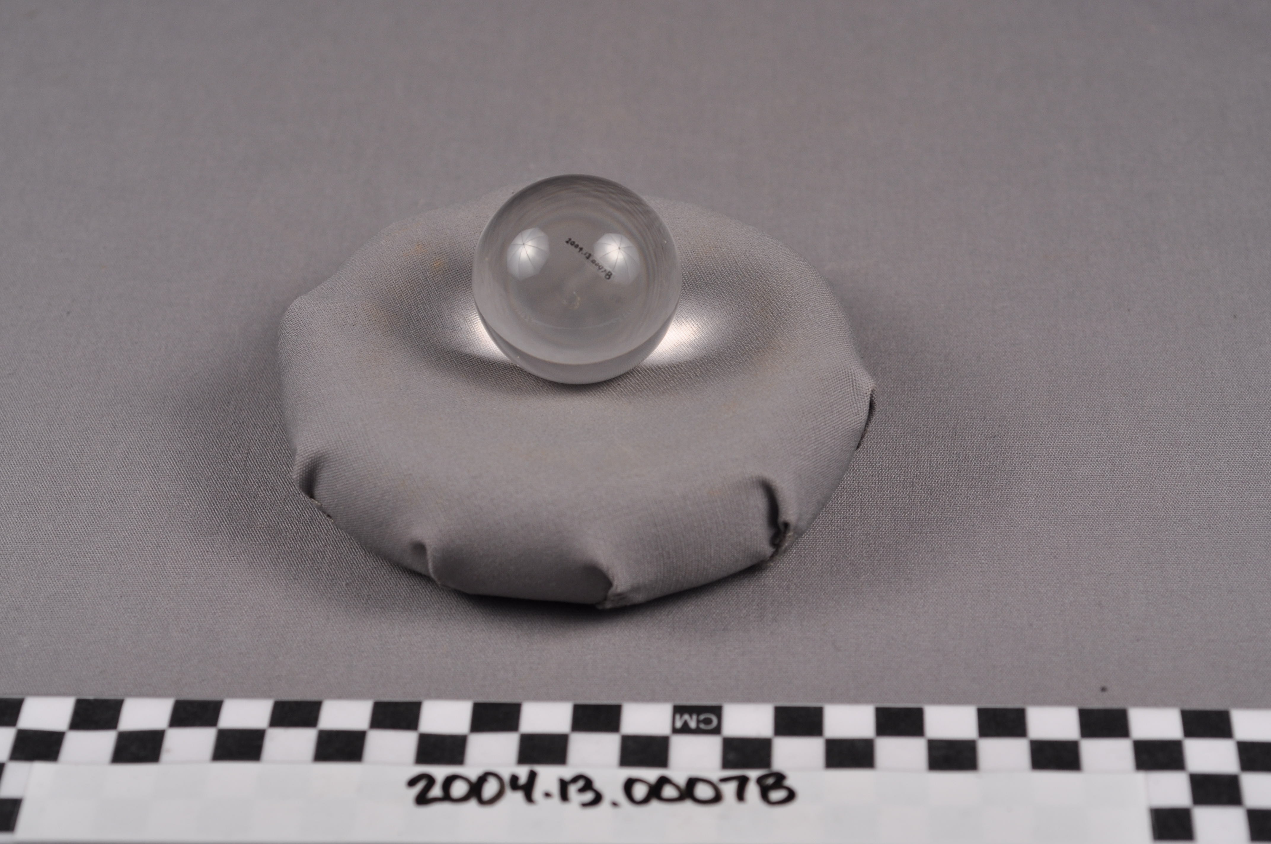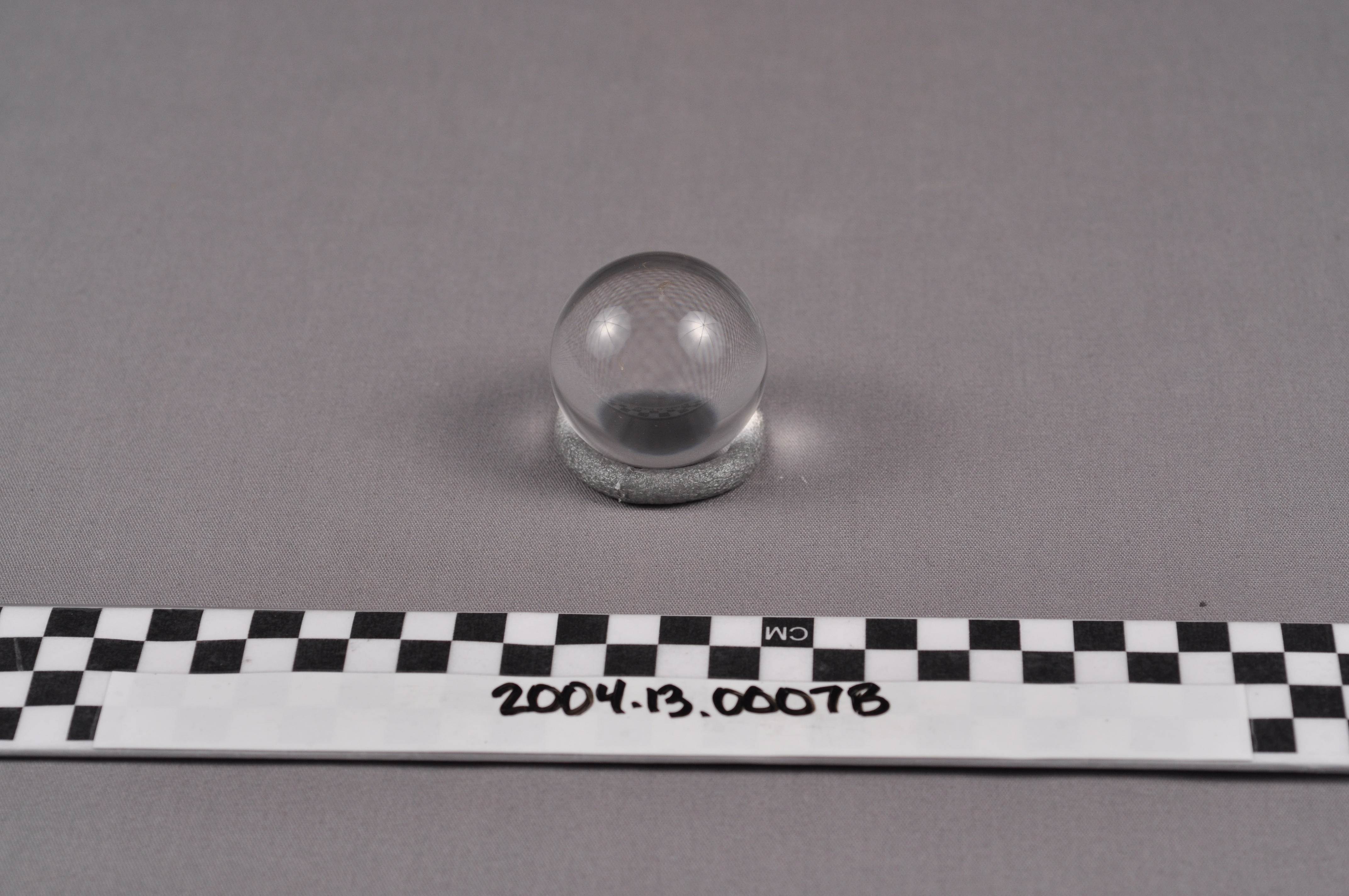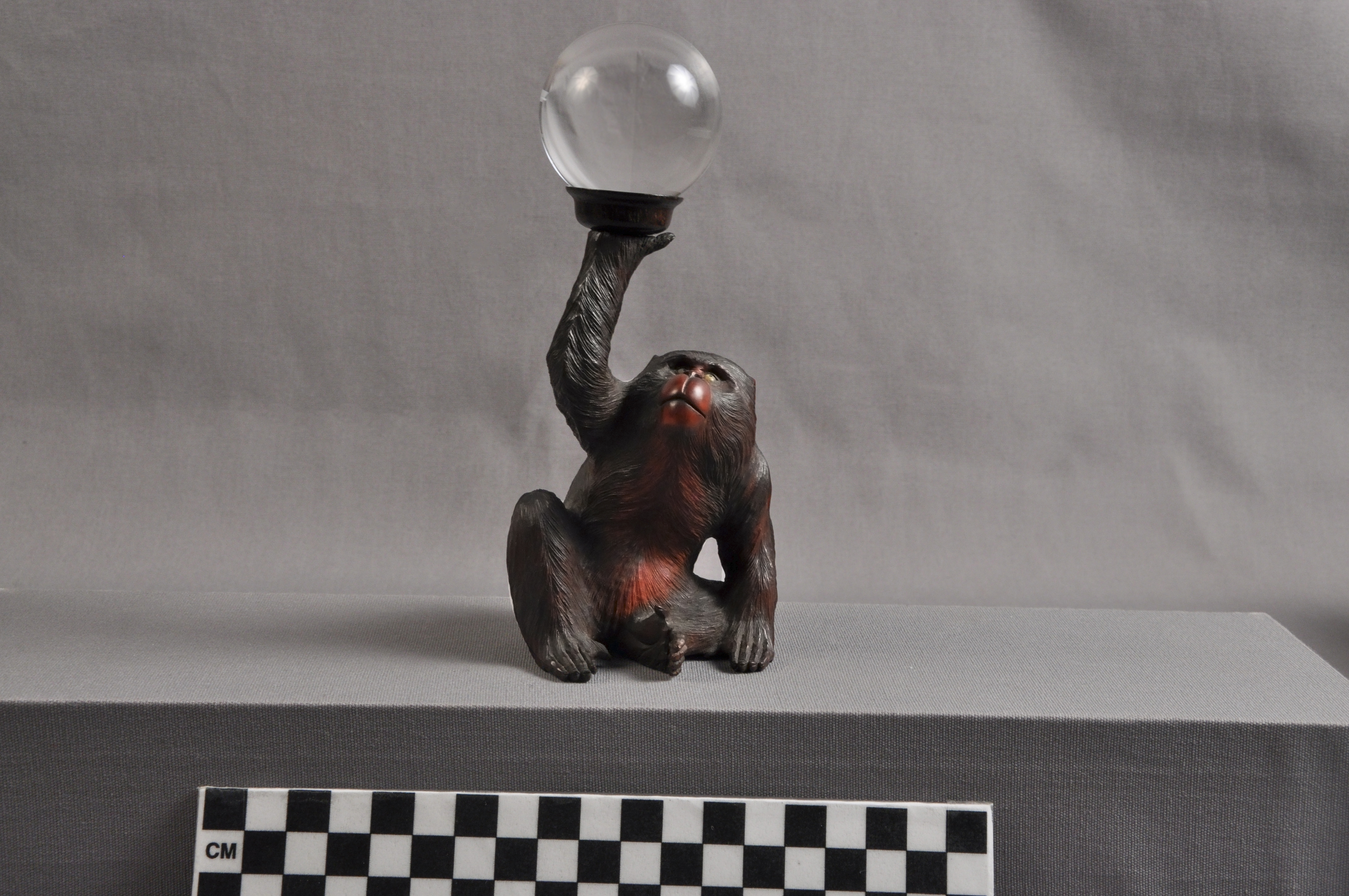 This is the crystal ball piece for a Japanese boxwood okimono of a seated monkey (saru) holding a crystal ball. The Saru is one of the Zodiac and frequently plays a role in legend. Rock crystal, which appears glass-like, was rarely used in Japanese decorative art, making this a rare specimen.