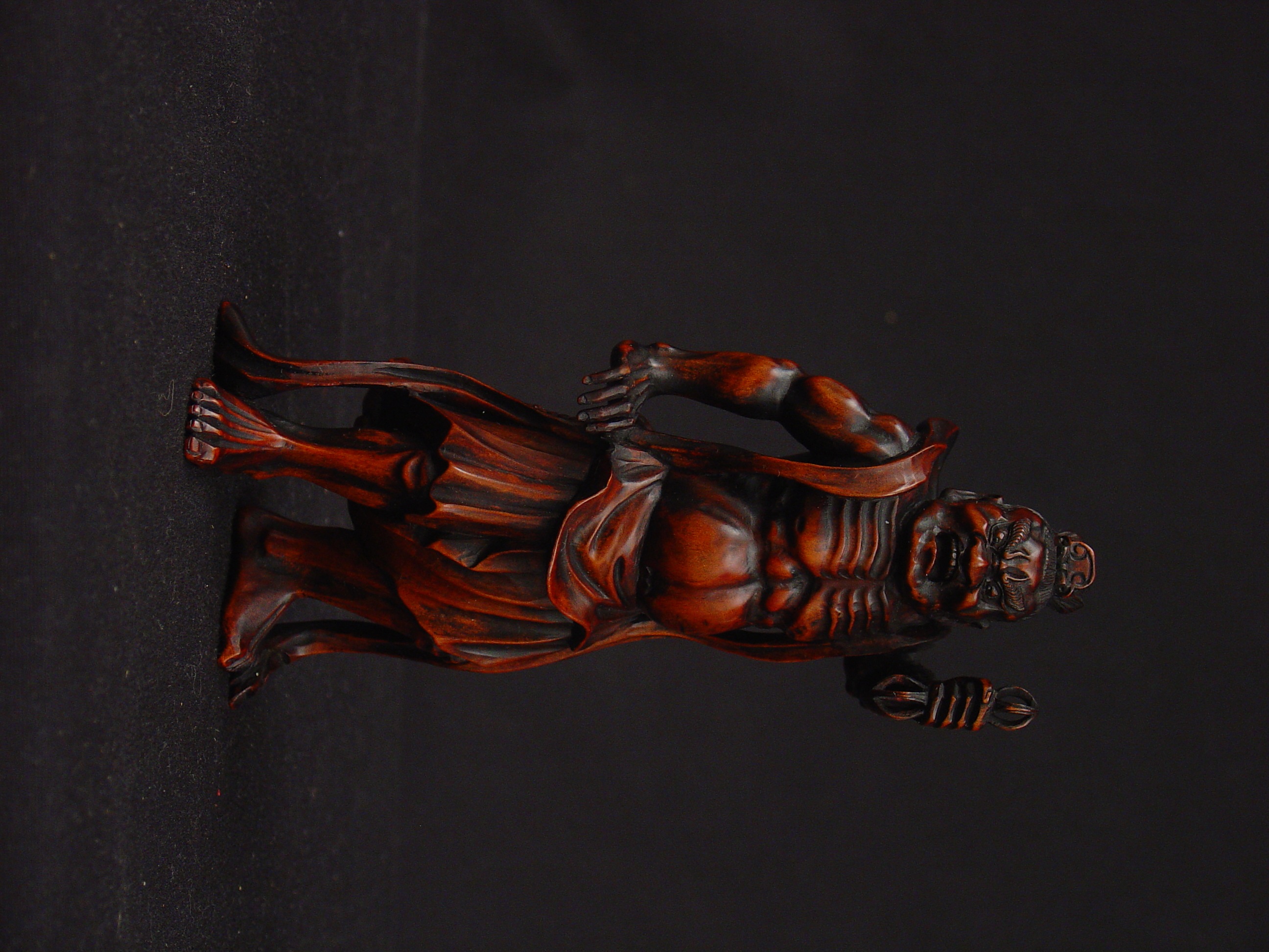 This is a Japanese okimono of one of the two Nio (Benevolent Kings), a pair of guardian deities who protect Buddhist sanctuaries. They are generally represented as warriors carrying a vajra, a club and ritualistic item of Hindu and Buddhist belief.