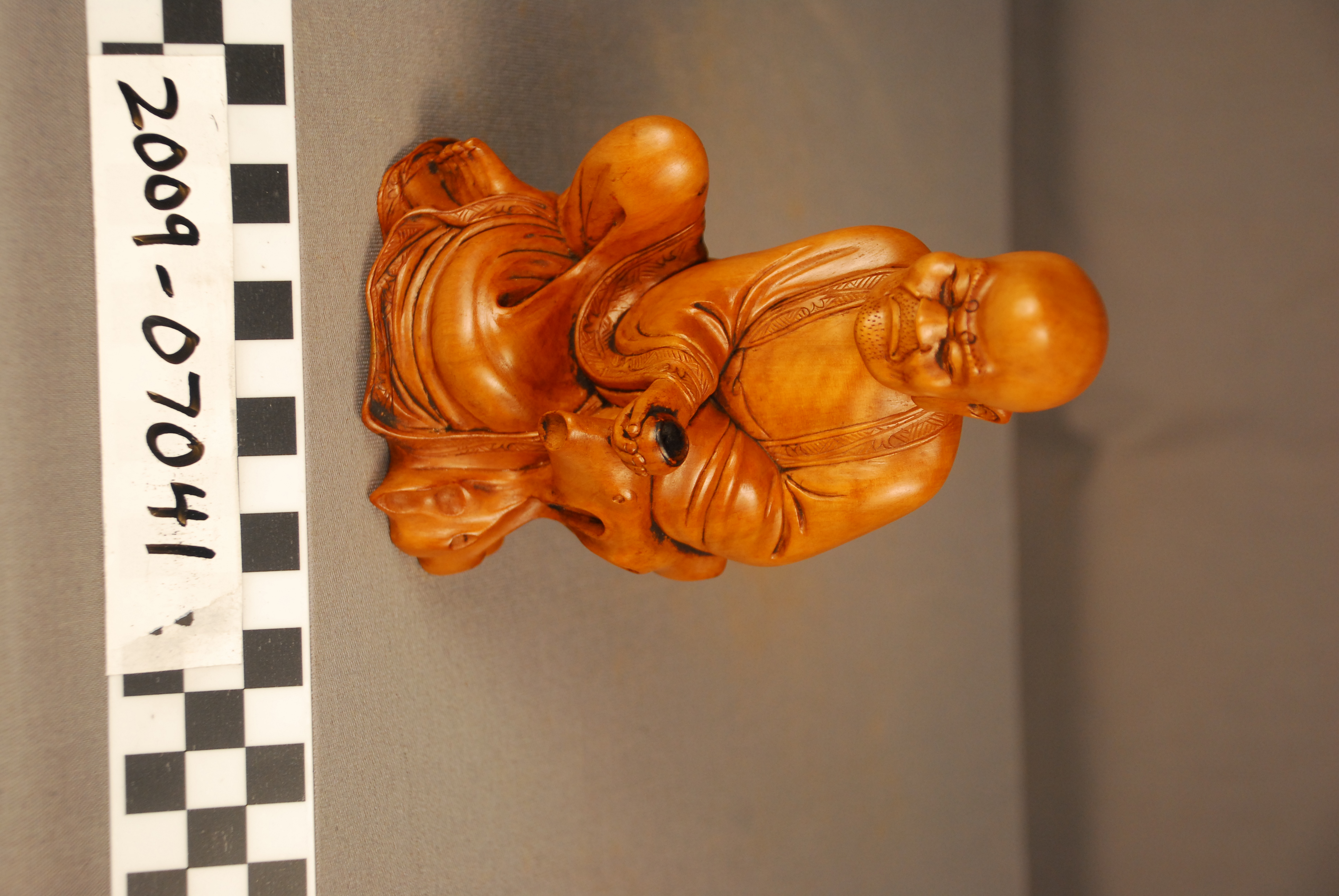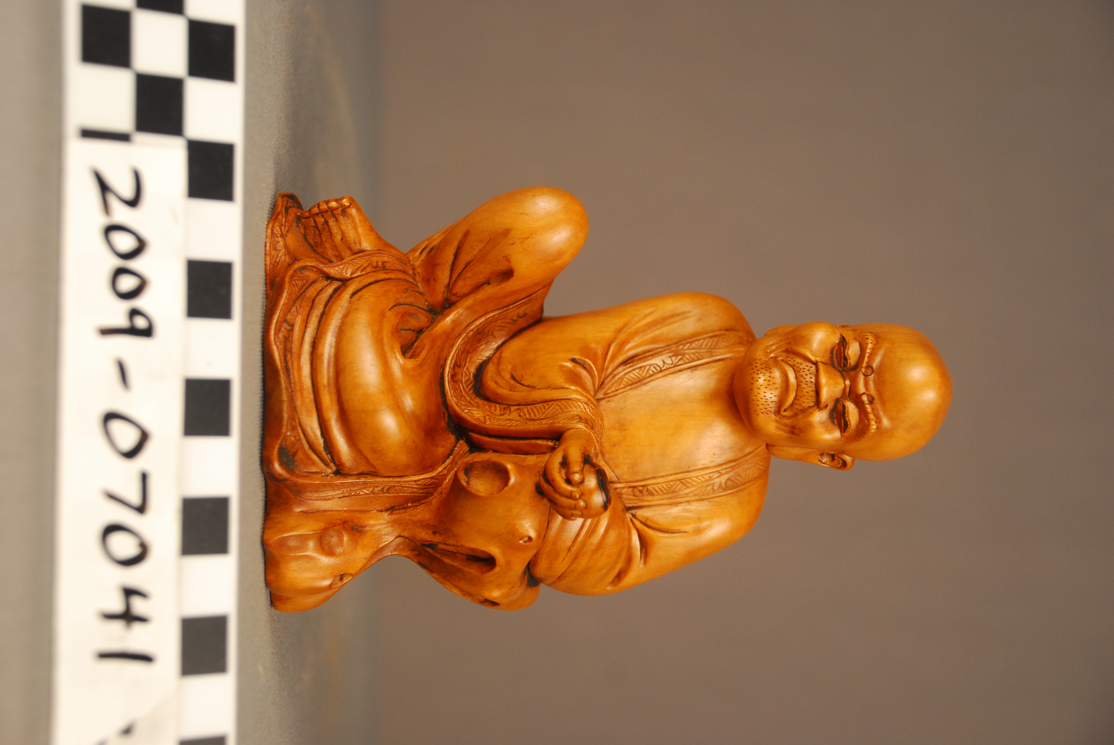 The Spurlock museum holds a variety of Chinese lacquer figures created during the Qing Dynasty (1644-1911), and they serve as representations of regional beliefs and ethics, cultural figureheads, and the human condition. Common muses included famed scholars and poets, arhats (Buddhist holy men), bodhisattvas (Buddhists who have achieved enlightenment but choose to remain in the world to help others end their suffering), deities of East Asian belief structures, and the Chinese zodiac. Animals, plants, and other natural objects were also carved and are typically associated with good fortune and other favorable life conditions.