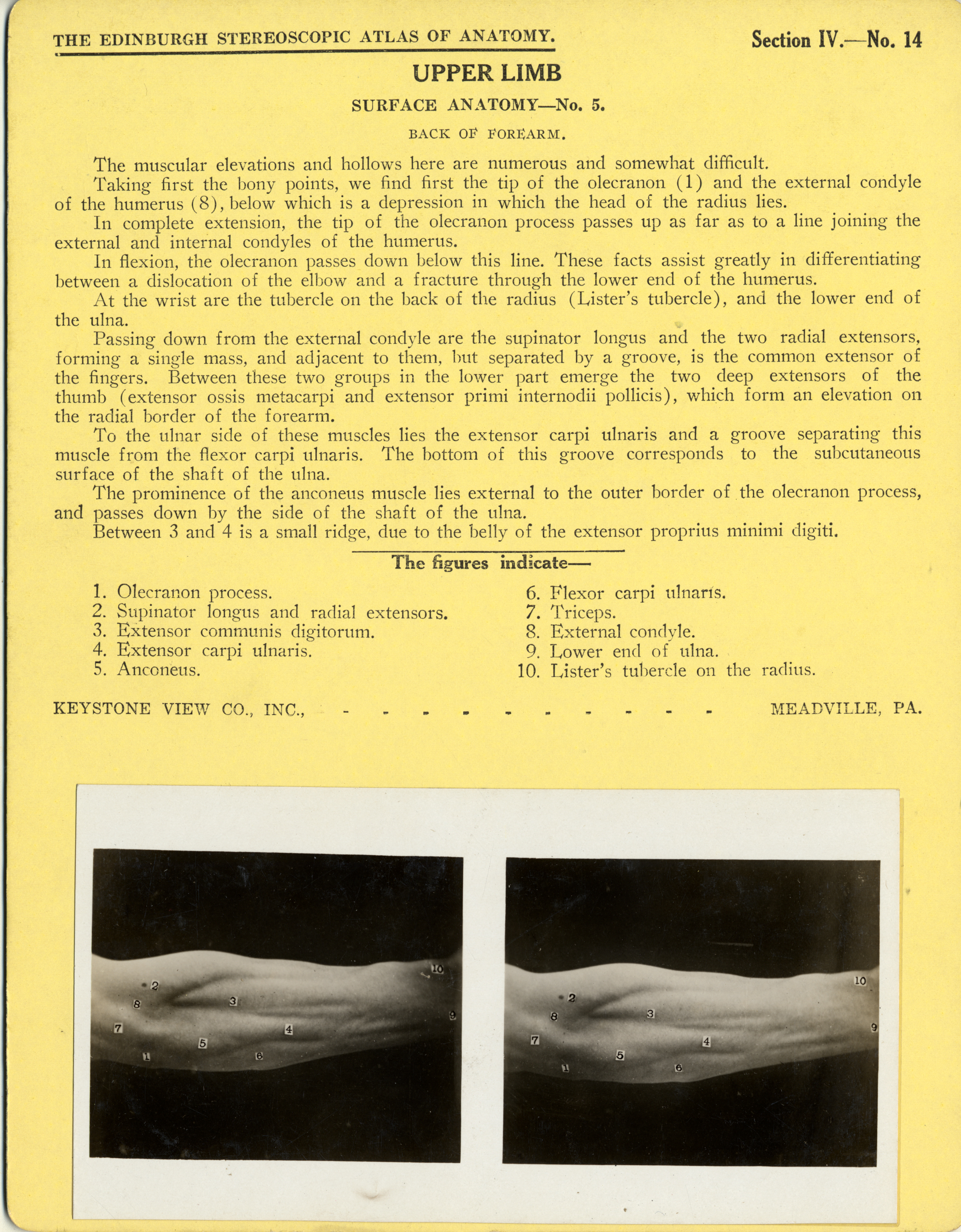 | Artifact Identification | Stereoscope Cards, Edinburgh Anatomy: Mediastina, Lungs, Upper Limb - Upper Limb, Surface Anatomy - No. 5. (2009.10.0002Q) |