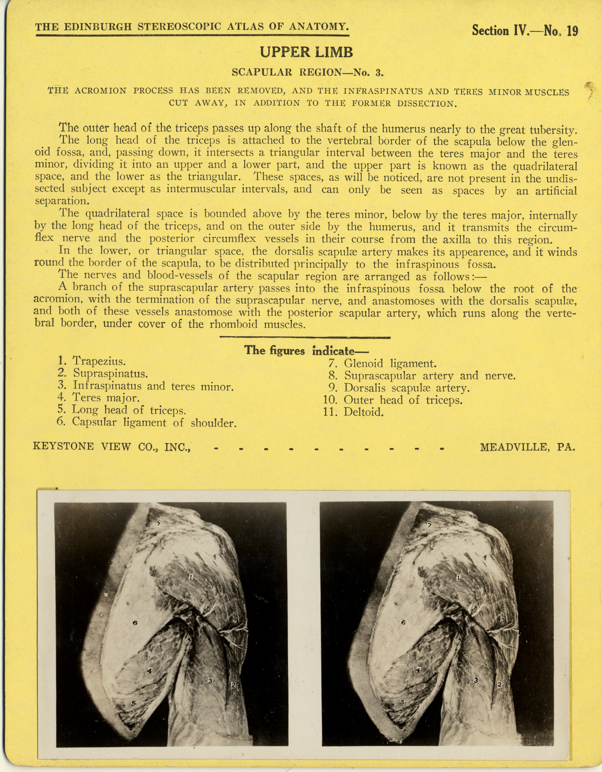 Stereoscope Cards, Edinburgh Anatomy: Mediastina, Lungs, Upper Limb - Upper Limb, Scapular Region - No. 3.