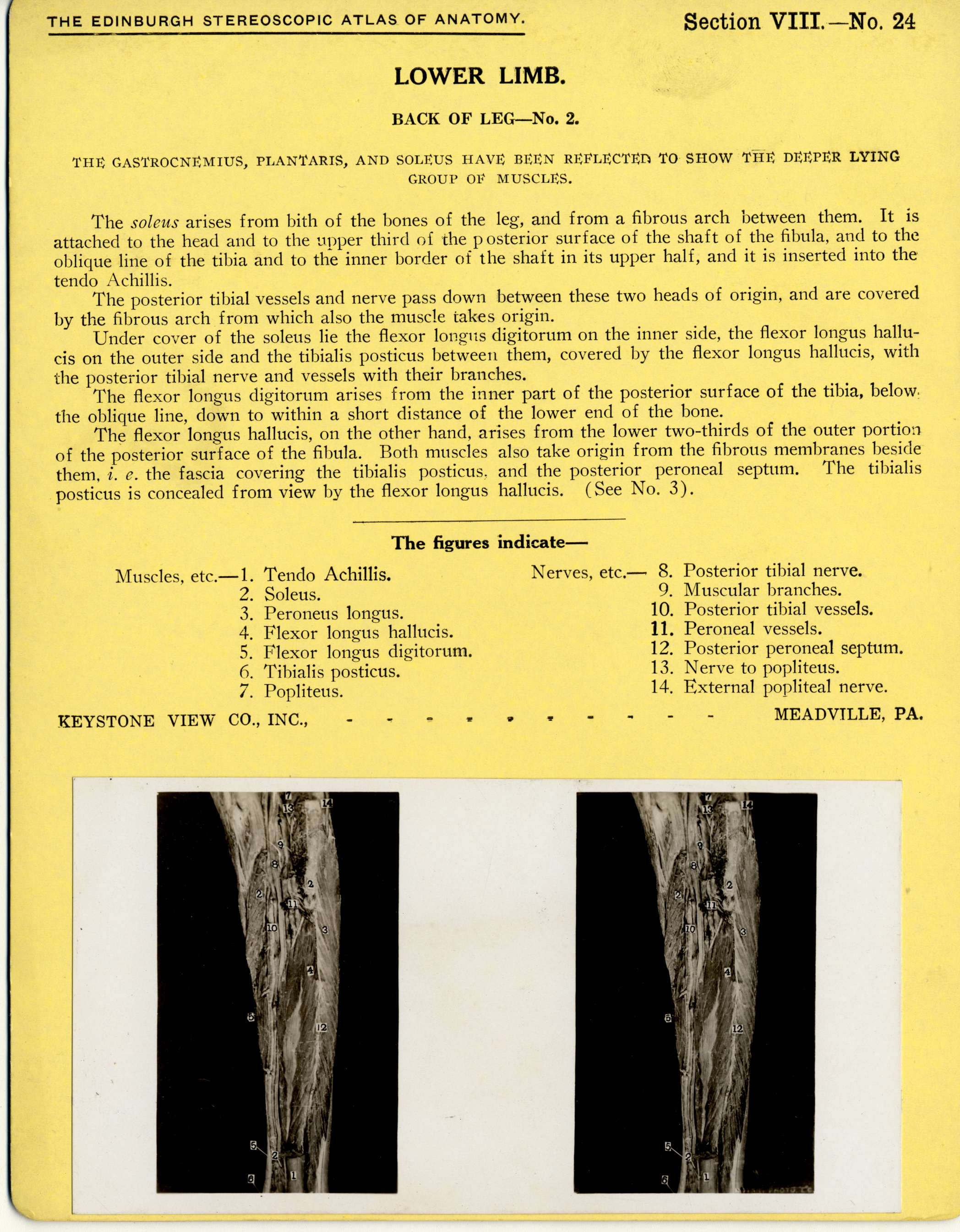 Stereoscope Cards, Edinburgh Anatomy: Lower Limb Continued - Lower Limb, Back of Leg - No. 2.