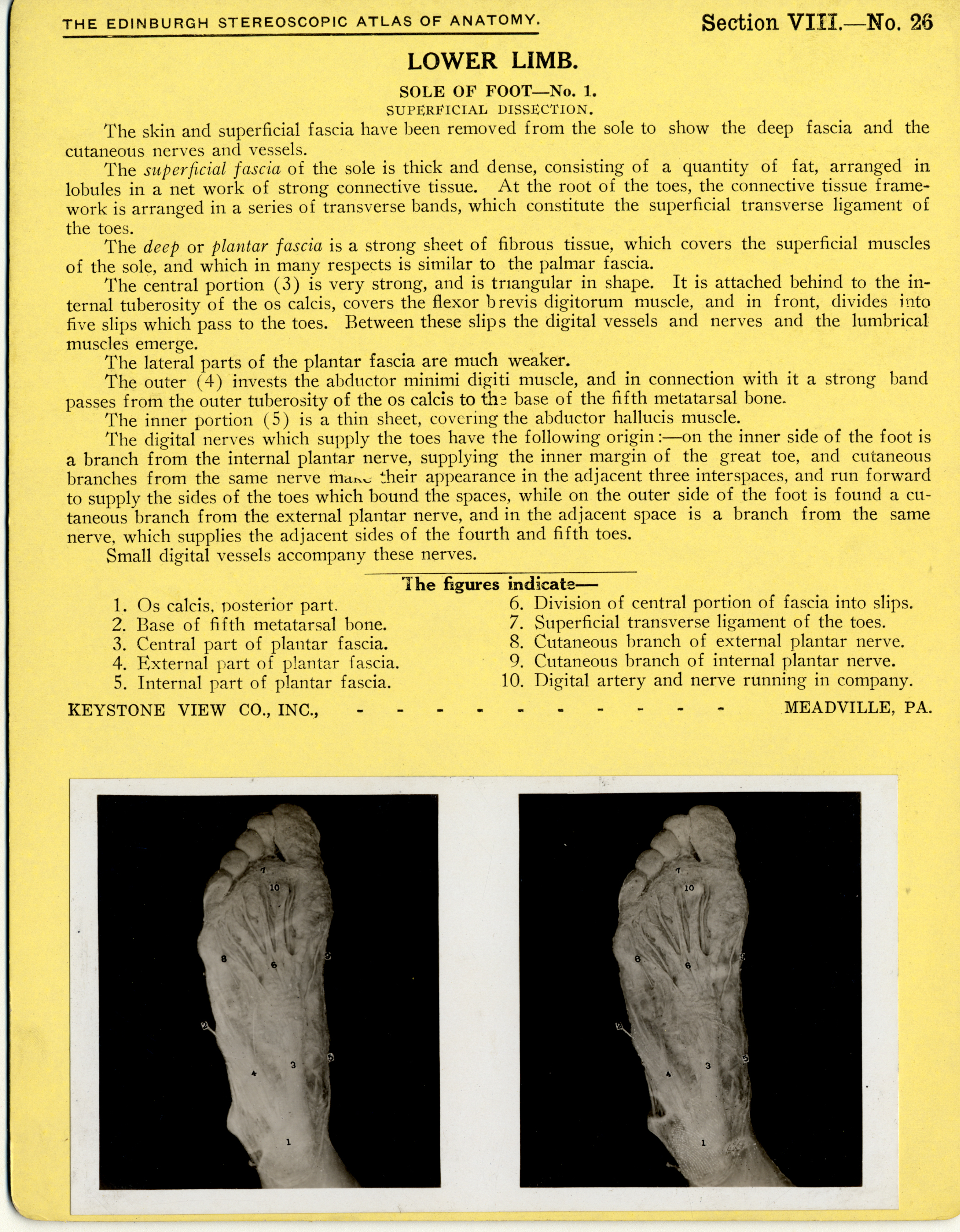 Stereoscope Cards, Edinburgh Anatomy: Lower Limb Continued - Lower Limb, Sole of Foot - No. 1.