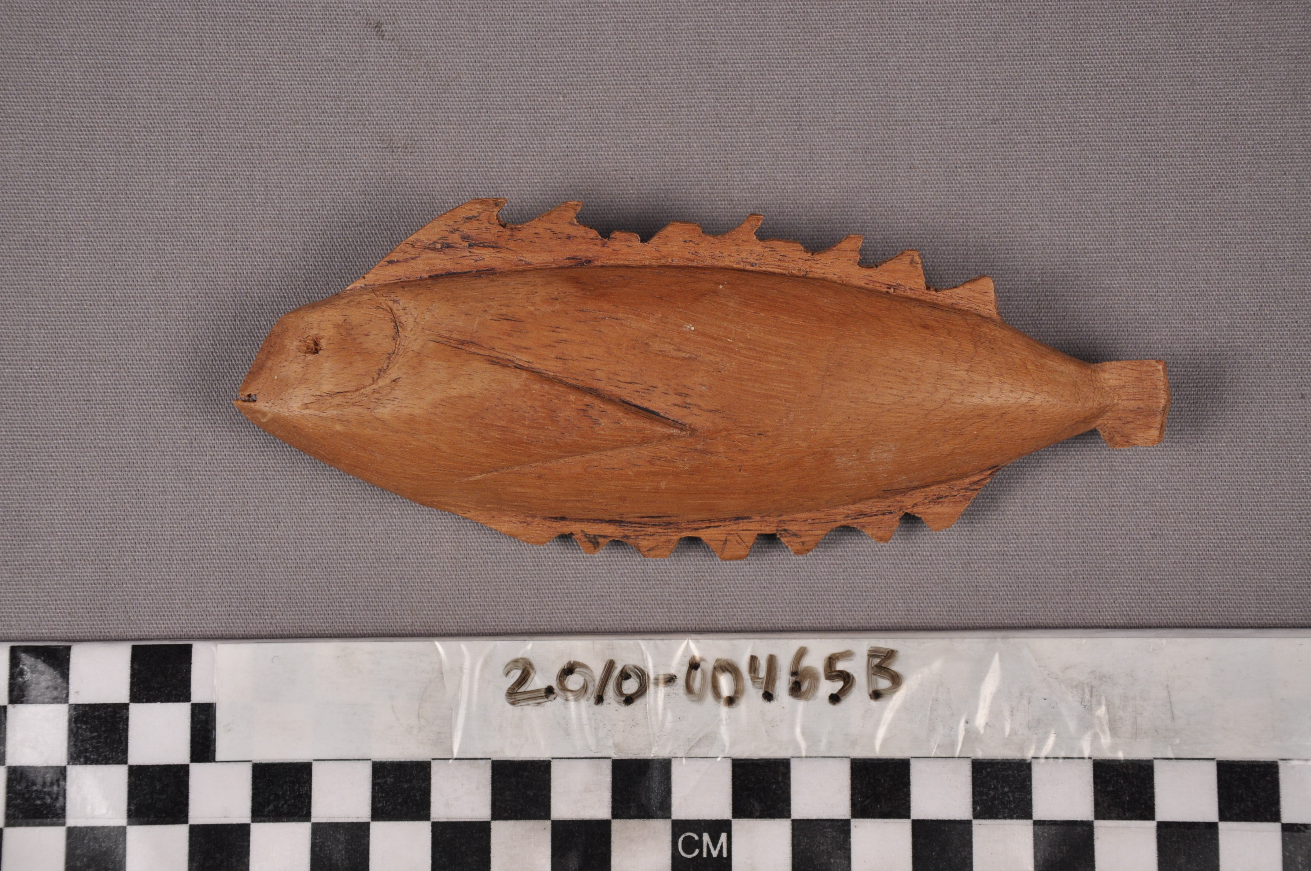 | Artifact Identification | Carving: Fish for Breadfruit Ceremonial Bowl Held by Two Men (2010.07.0024B) |