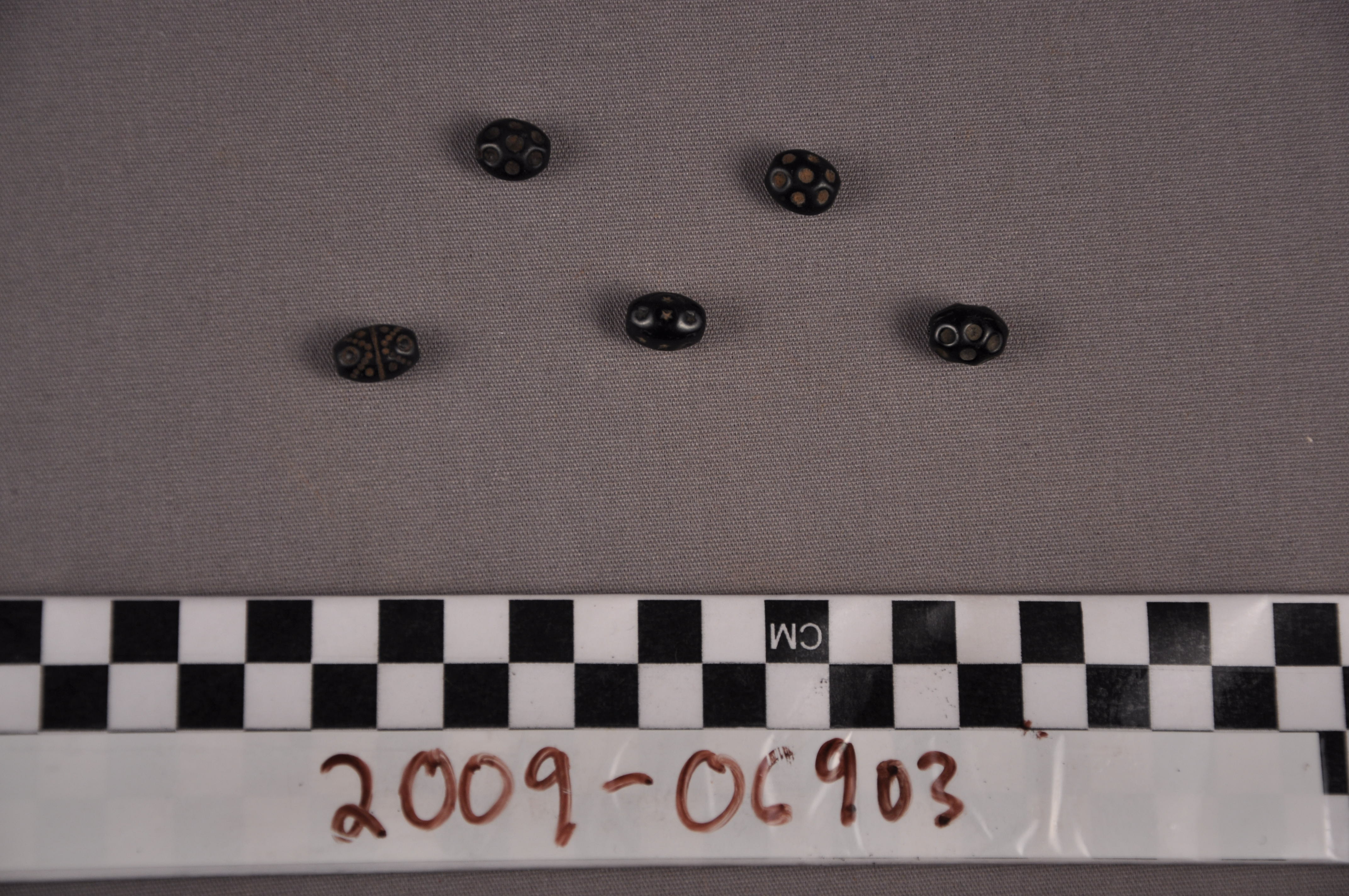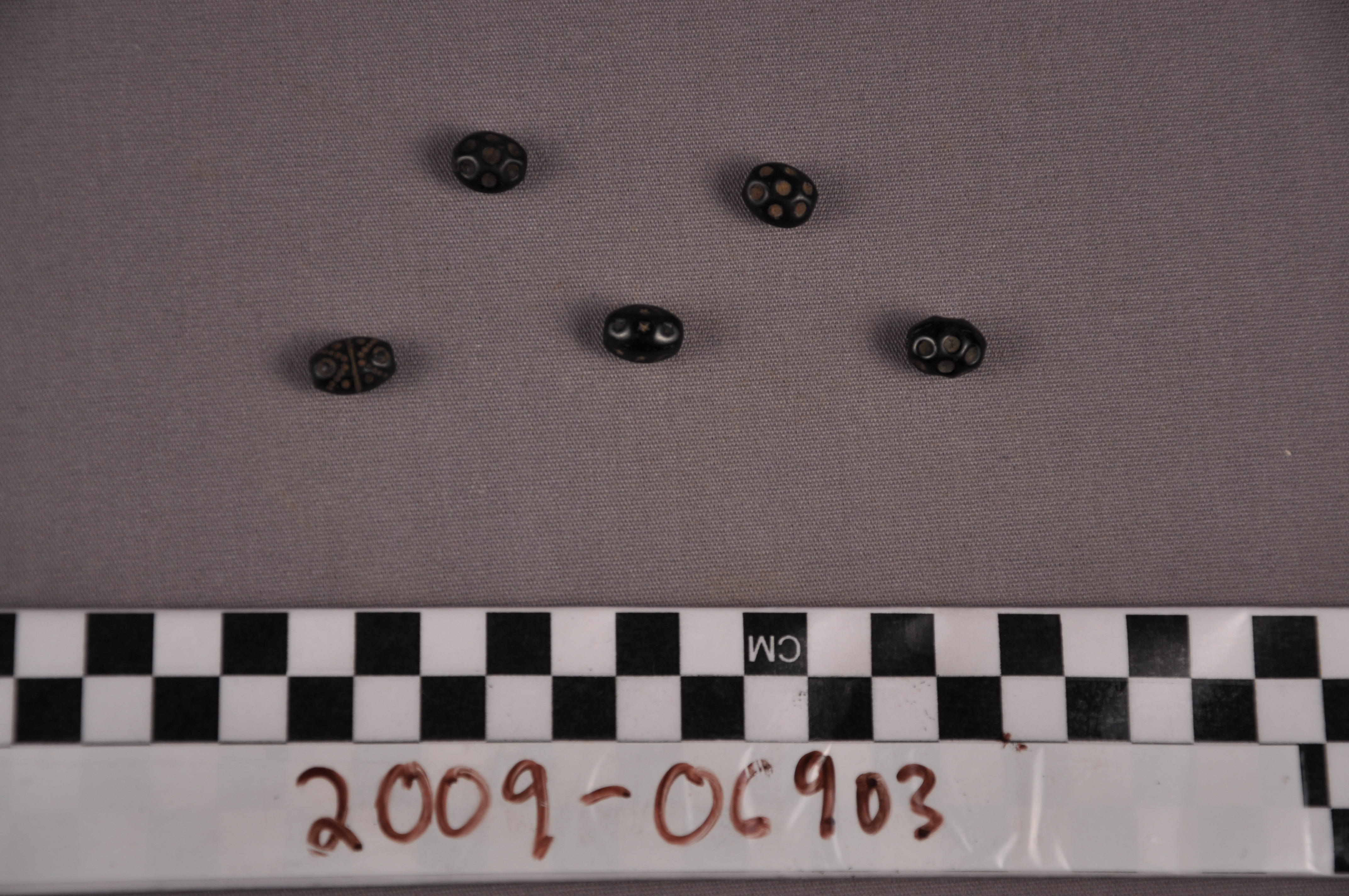 | Artifact Identification | Five Trade Beads (2012.03.0445) |