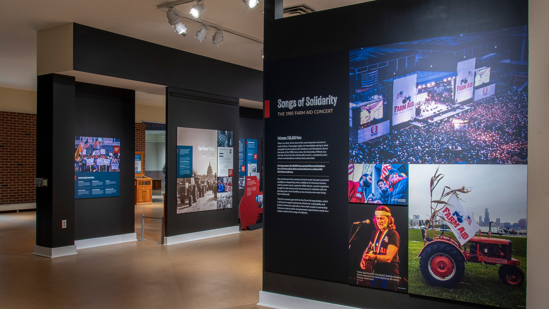 On September 22, 1985, 80,000 fans packed Memorial Stadium for a 14-hour show that was broadcast to a nationwide television audience. Star performers from country and rock music focused a powerful spotlight on deepening crisis conditions for American farmers. Led by country music superstar Willie Nelson, concert organizers sought to raise money and consciousness in solidarity with the growing outcry from families across America who were losing their livelihoods.